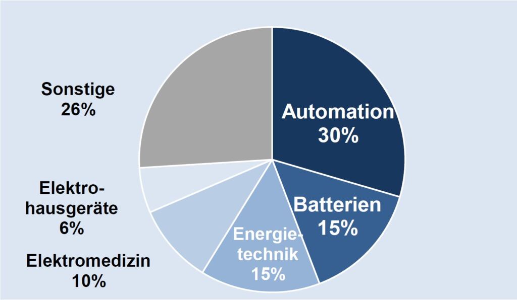 Die deutsche Elektroindustrie exportierte 2020 Waren im Wert von 710Mio.€ nach Vietnam, was einem Anteil von 0,4% an den gesamten deutschen Branchenausfuhren in Höhe von 202,7Mrd.€ entspricht. Im Vergleich zu 2019 erhöhten sich die Elektrolieferungen in das Land um 26,2%. Damit übertreffen die Branchenexporte das Niveau zur Jahrtausendwende inzwischen um den Faktor 17. Im vergangenen Jahr trugen insbesondere die Ausfuhren der Fachbereiche Automation (210Mio.€), Batterien (104Mio.€), Energietechnik (104Mio.€), Elektromedizin (69Mio.€) und Elektrohausgeräte (39Mio.€) zu den deutschen Elektroexporten nach Vietnam bei.
