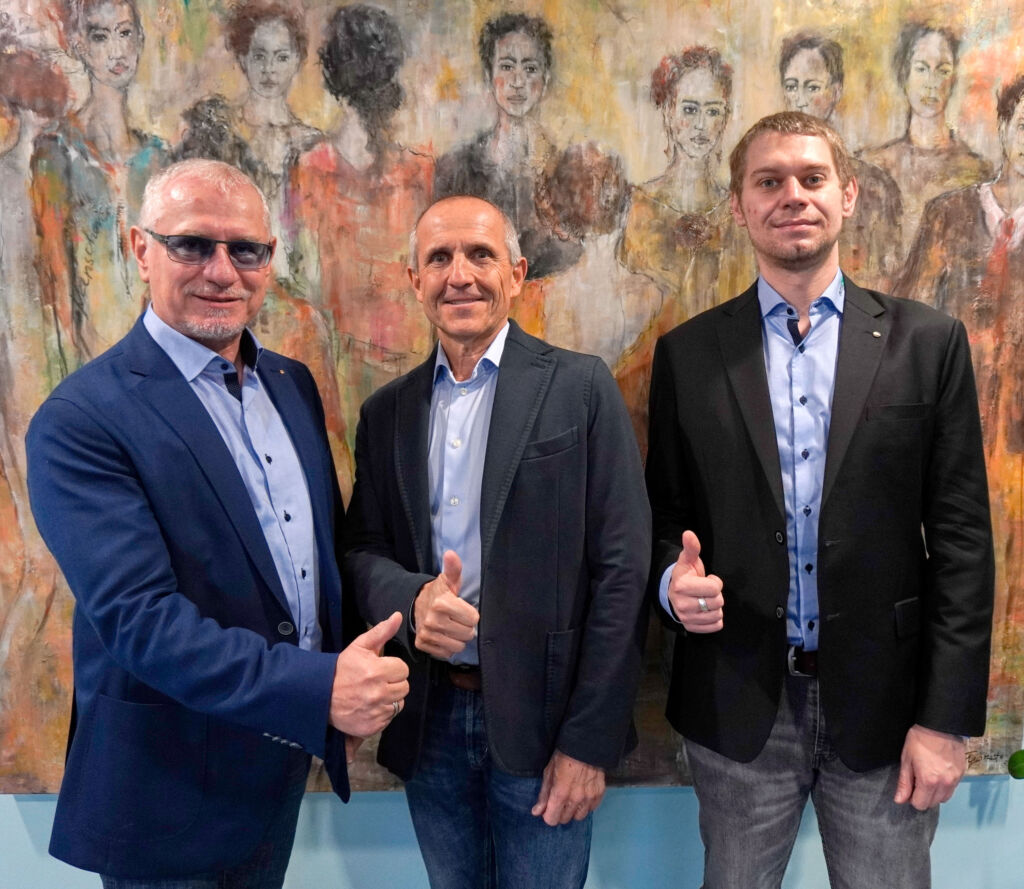 (v.l.): CEO Manfred Eberhard, Aufsichtsratsvorsitzender Oswald Berger und das neue Vorstandsmitglied CTO Julian Eberhard.