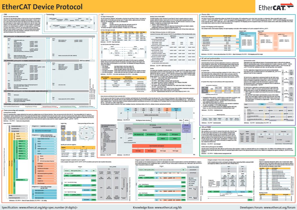 Die Ethercat Technology Group hat ein neues Ethercat-Device-Protocol-Poster entwickelt. Dieses befasst sich inhaltlich mit der Ethercat-Basis-Technologie und soll dazu dienen, Ethercat im Überblick visuell darzustellen. Zielgruppe für das EDP-Poster sind in erster Linie Entwickler. Aber auch z.B. Studierende finden in dem Dokument ein hilfreiches Support-Instrument. Das Tool ist kostenlos, in englischer sowie japanischer Sprache verfügbar und steht auch für Nicht-ETG-Mitglieder auf der Homepage zum Download bereit.