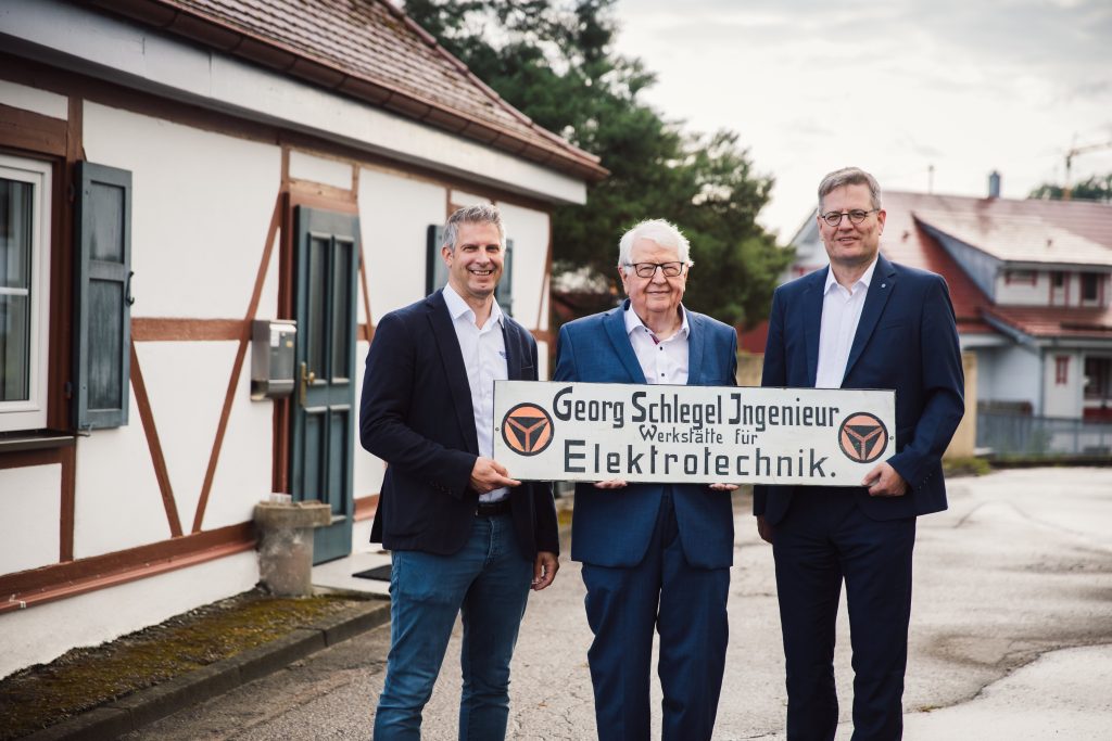 Das Unternehmen Georg Schlegel feiert in diesem Jahr sein 80-jähriges Bestehen. Begonnen hat diese Erfolgsgeschichte schon zwei Jahrzehnte früher: Georg Schlegel hat bereits 1924 im elterlichen Elektrizitätswerk eine Elektroinstallationsabteilung etabliert. Am 1. April 1945 gliederte der Elektroingenieur dann die Abteilung aus und gründete damit seine eigene Firma. So führte er sein junges Unternehmen durch die schwierige Nachkriegszeit und entwickelte u.a. Dampf-Vulkanisierapparate zur Reparatur beschädigter Reifen, fertigte Schutzabdeckungen für Freileitungsanschlüsse, baute elektrische Steuerungen für Aufzüge und konstruierte ein Blindschaltbild für die damalige EVS. Bereits 1947 wurde die erste Reihenklemme vor gestellt. Wegen eines Patentstreits um die Reihenklemme, bei dem Schlegel später Recht behalten sollte, wurde 1952 vorsorglich ein weiteres Standbein geschaffen: Es wurden Befehlsgeräte zur Steuerung von Maschinen und Anlagen konstruiert – das heutige Kerngeschäft des Unternehmens. Inzwischen hat der Befehlsgerätespezialist mehr als 8.000 Produkte im Sortiment. Bis heute ist das Unternehmen familiengeführt – inzwischen in der dritten Generation.
