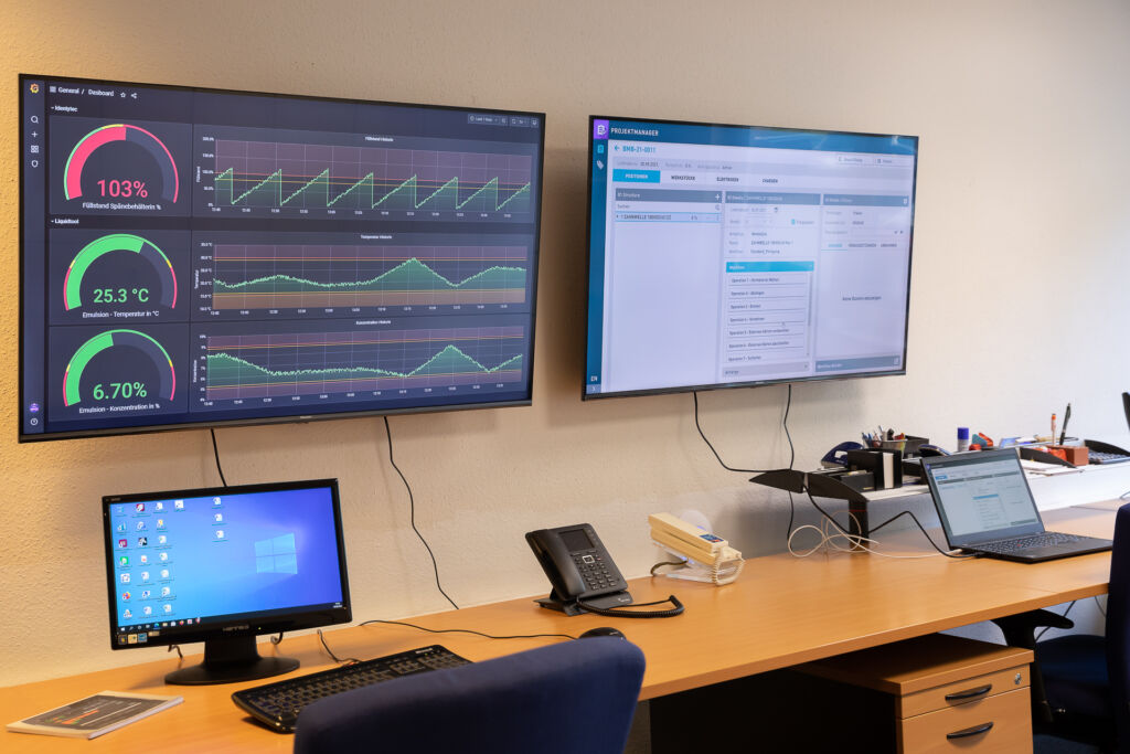 Alle diese Punkte führten zur Überlegung, in einer Demofabrik zu zeigen, was Stand der automatisierten Technik ist. Ein theoretischer Teil und ein Praxisteil demonstrieren die digitale Zerspanungsfabrik. Alles zum Anfassen, von der Logistik bis hin zum Leitstand. Um dieses Projekt zu stemmen, geht es nicht ohne Bediener, Moderatoren, Dozenten und Officemanagement. Dabei wurde Wert darauf gelegt, nicht der Industrie zu zeigen wie zerspant wird, sondern wie automatisiert wird und die Maschinen und Geräte zu vernetzen.