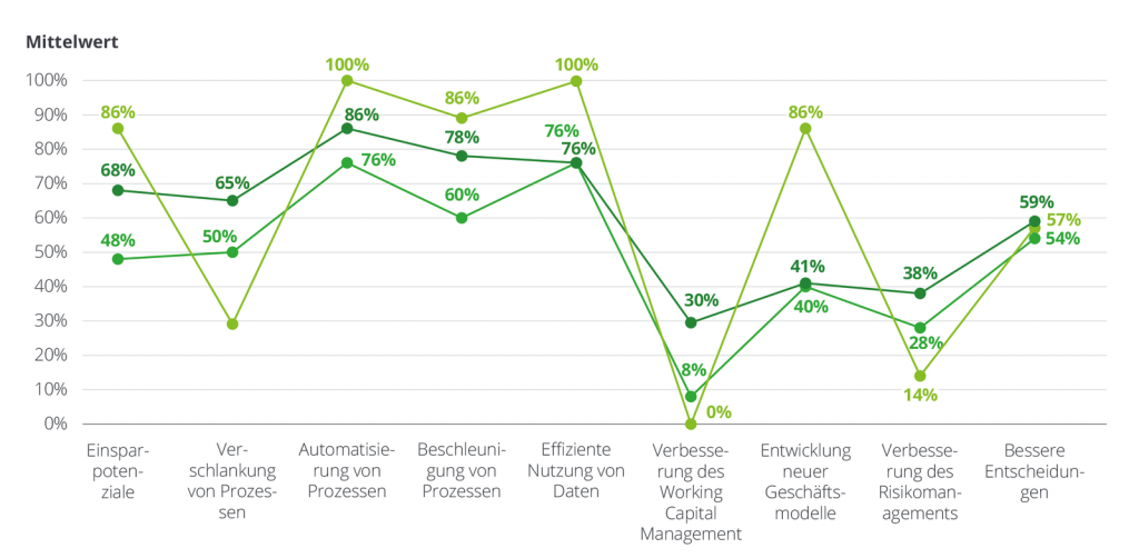 KI-Technologien stehen reihenweise bereit – doch welche haben für den Mittelstand die größte Bedeutung? 45% der Befragten sehen regelbasierte Systeme in Sachen Relevanz an erster Stelle, gefolgt von Machine Learning (41%) und Deep Learning (36%). Diese Priorisierung deckt sich mit den Potenzialen, die sich die Unternehmen vom KI-Einsatz am ehesten versprechen: nämlich der Automatisierung von Prozessen (77%), der effizienten Nutzung von Daten (72%) und der Beschleunigung von Prozessen (66%). Lediglich 43% erhoffen sich von KI die Entwicklung neuer Geschäftsmodelle. Entsprechend gering fällt mit 26% auch der Anteil der Unternehmen aus, die Anwendungen selbst entwickeln – 34% der Befragten nutzen KI als Produkt, 30% als Service.