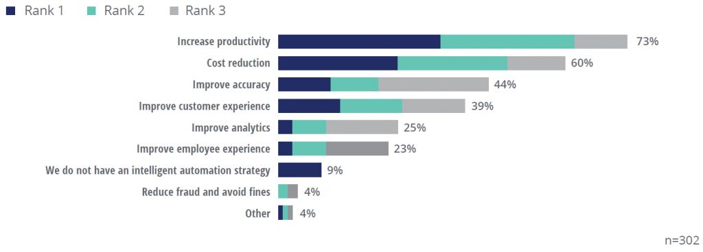 Eine Umfrage von Deloitte unter mehr als 500 Führungskräften weltweit zeigt, dass 58% der Befragten in ihrem Unternehmen bereits mit einer intelligenten Automatisierung begonnen haben. Damit hat die technologiebasierte Umstellung von Geschäftsprozessen die nächste Stufe erreicht, in der Prozessautomatisierung, künstliche Intelligenz (KI) und verwandte Technologien kombiniert werden. Die befragten Führungskräfte rechnen mit einer Umsatzsteigerung von 11% und einer durchschnittlichen Kostensenkung von 22% in den nächsten drei Jahren. Hinzu kommen erwartete Kapazitätssteigerungen von 27%. Das entspräche der Arbeitsleistung von 2,4Mio. Vollzeitkräften in den befragten Unternehmen. Rund 38% der Entscheider, die sich mit dem Thema beschäftigen, haben Pilotprojekte zur intelligenten Automatisierung eingeführt. 12% von ihnen setzen die neue Technologie umfassend ein und 8% automatisieren in großem Umfang. Bei Letzteren haben sich die Zahlen im Vergleich zur Vorjahres-Befragung verdoppelt. 42% haben sich mit diesem Thema noch nicht befasst. Fragmentierte Prozesse sind für 36% die größte Hürde bei der Einführung von KI-basierter Automatisierung. Zur komplette Studie gelangen Sie mit Klick auf den Button.
