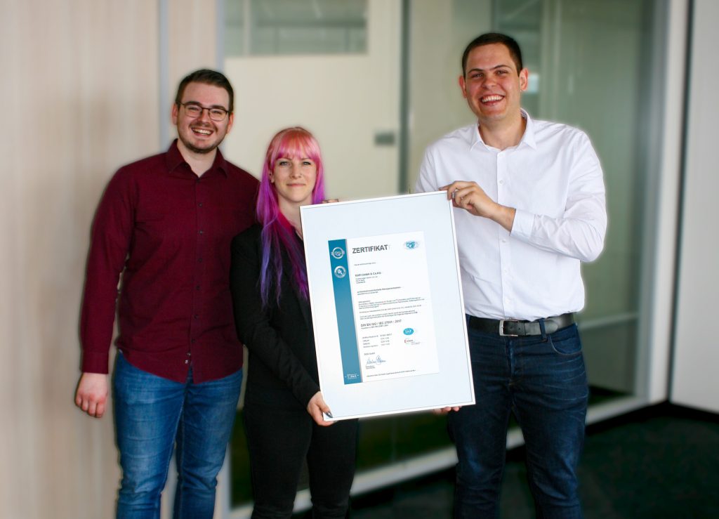 Rafi hat sein Managementsystem zum Schutz sensibler Informationen und Datenbestände nach ISO27001 zertifizieren lassen. In der Norm werden alle Anforderungen an die Einrichtung, den Betrieb, die kontinuierliche Verbesserung sowie die Dokumentation definiert. Im Zuge dessen hat das Unternehmen bestehende Prozesse wie beispielsweise dem Lieferantenmanagement oder dem Incident Response Management überarbeitet und angepasst. In einem weiteren Projektschritt wurden die Vorgaben für eine normkonforme Prozessdokumentation festgelegt und sicherheitsrelevante Richtlinien formuliert.