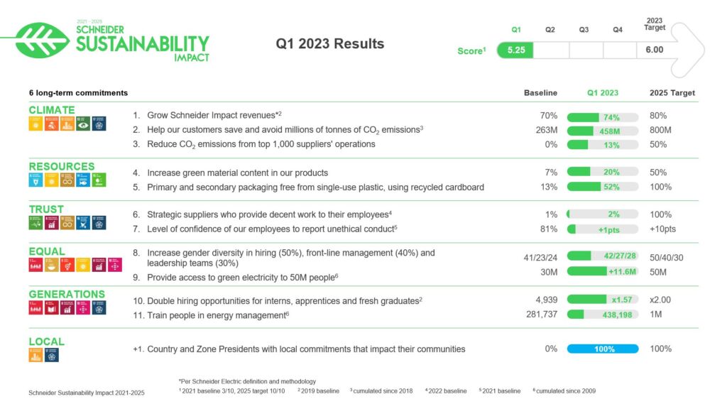 Schneider Electric hat die Ergebnisse seines Sustainability Impact Programms für das erste Quartal 2023 veröffentlicht. Im Report sind unter anderem Fortschritte in den Bereichen Klima und Ressourcen zu verzeichnen: Kunden haben bspw. mit den IoT-Lösungen des Konzerns seit 2018 458Mio.t CO2 eingespart. Auch unternehmerisch war das erste Quartal erfolgreich: Der Umsatz in den ersten drei Monaten stieg im Vergleich zum Vorjahr um gut 12% auf fast 8,5Mrd.€.