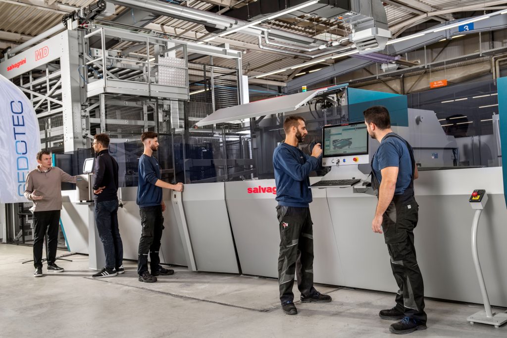 Sedotec hält nach Rekordzahlen 2023 an seinen weiteren Wachstumszielen fest und investiert Millionen in eine moderne, automatisierte Blechfertigung. Eine neue Salvagnini-Produktionslinie mit angebundenem Hochregal und Roboter fertigt Blechteile on-demand und just-in-time von Losgröße 1 bis zu Serien. Dabei verbessert eine modulare Produktionsmanagement-Software den gesamten Prozess. So reagiert Sedotec als ein führender mittelständischer Systemhersteller in der Elektroindustrie auf veränderte Kundenverhalten und Marktsituationen. Die Investition verdeutlicht die offensive Wachstumsstrategie des Unternehmens, das den Spitzenplatz bei Niederspannungs-Schaltanlagen erobern will. Die 2024 in Betrieb genommene Salvagnini Produktionslinie S4+P4 besteht aus den Komponenten Stanze S4, Turm MD, Zuführung MCU, Biegezelle P4 und Roboter SAR. Die Stanz- und Biegeeinheiten werden über den MD-Lagerturm mit 8 Fächern beschickt und von einem KUKA-Industrieroboter entladen. „So können wir unabhängig von der Losgröße just-in-time sowie on-demand produzieren und dabei aus einer Vielzahl von Formaten und Materialien wählen“, freut sich Produktions- und Projektleiter Leonardo Torrisi. Wichtig ist den Verantwortlichen dabei die flexible Automatisierung.
