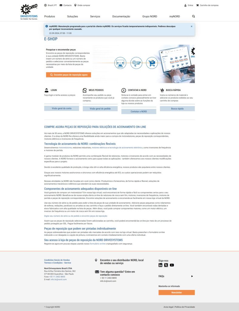 Das wachsende Webshop-Angebot von Nord Drivesystems wird um einen weiteren Ländermarkt mit angepasster Sprachversion ergänzt. Im neuen E-Shop für Brasilien können die Kunden aus einem umfangreichen Produktprogramm wählen. Der neue E-Shop ergänzt das bestehende Kundenportal myNord. Im Online-Shop sind Motoren, Frequenzumrichter und viele weitere Produkte rund um die Uhr bestellbar. Mit nur einem Klick kann der Anwender sehen, ob die gewünschte Komponente verfügbar ist und erfährt zudem den Preis und die voraussichtliche Lieferzeit. Bei Bestellungen vor 12 Uhr erfolgt der Versand noch am selben Tag. Eine Expresslieferung ist ebenfalls möglich. Mittelfristig soll der Web-Shop mit dem Kundenportal des Unternehmens zu einer zentralen Online-Plattform zusammenwachsen, die umfassende Möglichkeiten zur Konfiguration und Bestellung der Produkte bietet.