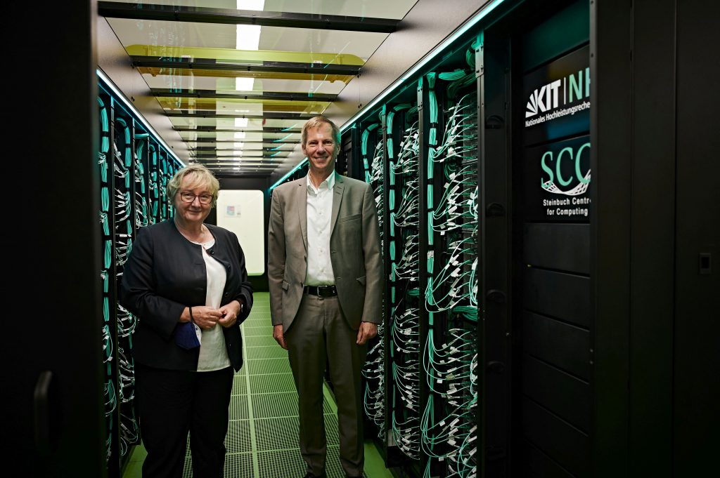 Der neue Supercomputer des Karlsruher Instituts für Technologie (KIT) zählt zu den 15 schnellsten Rechnern in Europa und zu den 13 energieeffizientesten der Welt. Die Rechenleistung des Hochleistungsrechners Karlsruhe, kurz HoreKa, macht neue Erkenntnisse etwa in Klima-, Energie- und Medizinforschung möglich. Am vergangenen Freitag hat die baden-württembergische Ministerin für Wissenschaft, Forschung und Kunst Theresia Bauer die 15Mio.€ teure Maschine der Wissenschaft übergeben. Insgesamt kann HoreKa eine Spitzenleistung von 17 Petaflops – 17 Billiarden Rechenoperationen pro Sekunde – erbringen, was etwa der Leistung von rund 150.000 Laptops entspricht. Auf der zweimal im Jahr erscheinenden Top-500-Liste der schnellsten Rechner der Welt belegt HoreKa aktuell Rang 52. Bei der Energieeffizienz landet HoreKa im internationalen Vergleich aktuell sogar auf Platz 13.