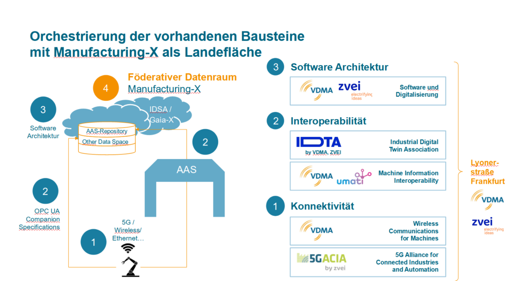 Mit dem Öffnungsdruck des European Data Acts und dem gemeinsamen Datenraum Manufacturing-X öffnet sich die historische Chance, um industrielle Stärke in ein führendes, digitales Ökosystem einzubetten und die Souveränität zu sichern. Hierzu muss es gelingen, den Datenraum zum Vertrauensraum zu machen. Der Verbandsraum von VDMA und ZVEI bietet sich dafür als Ausgangspunkt einer basisdemokratischen Orchestrierungsstruktur an: Mit dem revolutionären Aufbruch von der Datatur zur Datokratie. Durch die Maxime ‚Standardisierung und Interoperabilität‘ soll es im Datenraum Manufacturing-X gelingen, Synergien zu heben, resiliente Lieferstrukturen zu etablieren, klimaneutrale oder zirkuläre Produktion zu realisieren und neue Geschäftsmodelle zu entwickeln.