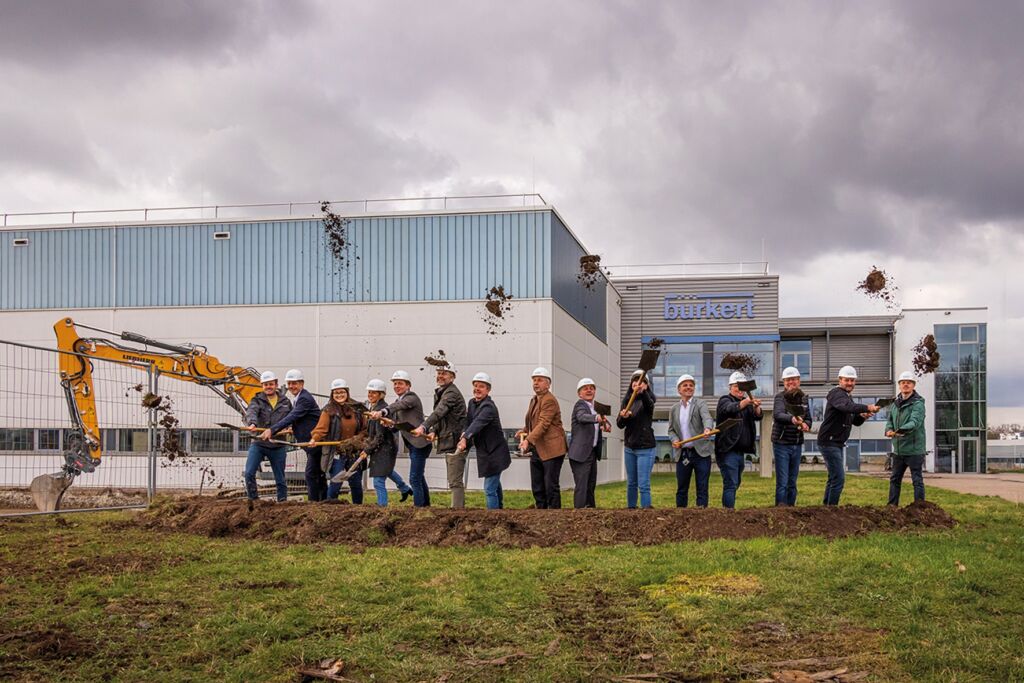 Mit einem feierlichen Spatenstich startete die Erweiterung des Bürkert-Werks in Öhringen, die den Grundstein für eine nachhaltige Zukunft und das geplante Wachstum des Unternehmens am Standort legt. Bereits im Januar 2024 wurde mit den Erdarbeiten begonnen. Die Neubauten umfassen eine zusätzliche Nutzfläche von 5.800 Quadratmetern – davon sind rund 60 Prozent für die Produktion bestimmt, die restlichen 40 Prozent für die Bürkert-Logistik.