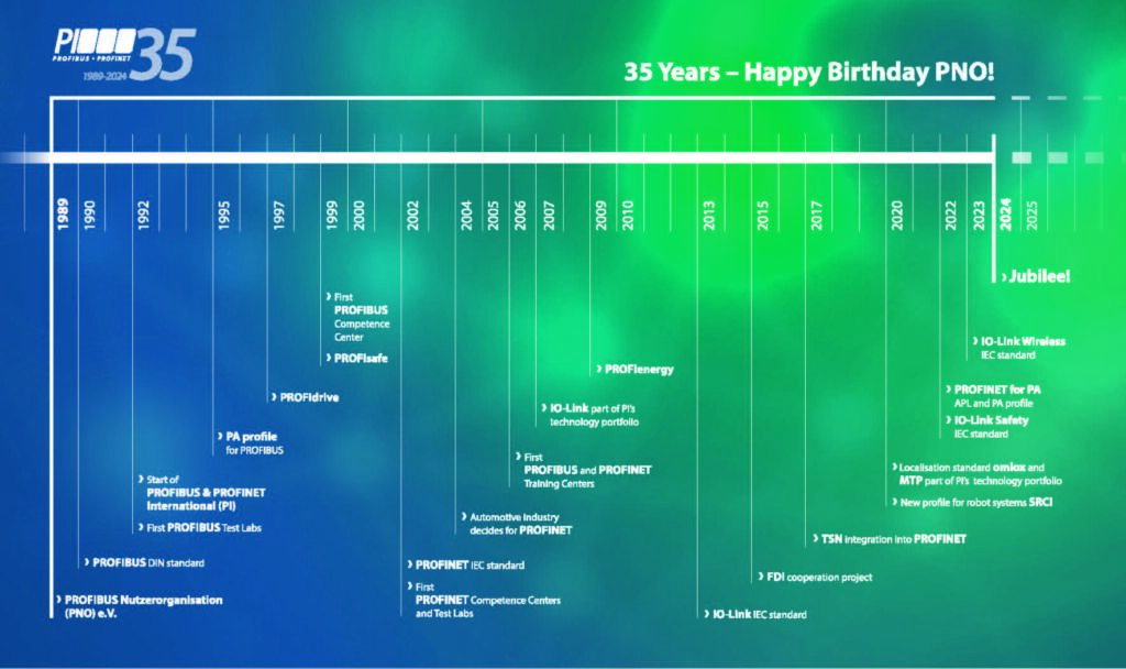 Vor 35 Jahren, am 11. Dezember 1989, wurde die Profibus Nutzerorganisation e. V. in Frankfurt gegründet, um die Standardisierung und Technologie von Feldbussystemen voranzutreiben. Damals legten zehn Firmen, vier technisch-wissenschaftliche Institute sowie der ZVEI die Grundlagen für eine durchsetzungsfähige Feldbusnorm. Heute ist Profibus & Profinet International mit 24 regionalen Nutzerorganisationen auf allen Kontinenten die weltweit führende Nutzerorganisation für industrielle Kommunikationstechnologien. Nicht nur die Mitgliedsfirmen sind gewachsen, auch das von der PNO betreute Portfolio ist inzwischen breit aufgestellt. Längst geht es nicht mehr nur um Profibus und Profinet, sondern heute gehören IO-Link, omlox, MTP sowie die Roboterschnittstelle SRCI ebenso zum Leistungsspektrum von PI.