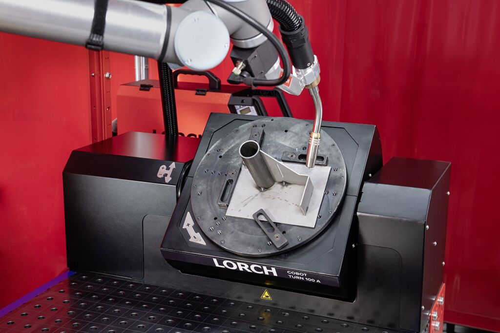 Mit dem Systembaukasten myCobot bietet Lorch jetzt einen einfachen und zielgerichteten Einstieg in die Welt des kollaborativen Schweißens. Unternehmen können sich künftig aus der Cobot Welding World ihre individuelle Automatisierungslösung zusammenstellen, die auf ihre speziellen Schweißaufgaben und Anforderungen zugeschnitten ist. Neben der Basisausstattung des Systems mit dem Cobot UR10e, der Steuerungssoftware Lorch Cobotronic und Lorch Connect für die digitale Schweißdatenanalyse kann die jeweilige Stromquelle und der passende Brenner je nach Schweißverfahren (Mig-Mag oder Wig) ausgewählt werden. Flexibel entscheidet der Kunde, ob er zusätzliche Hardware, wie einen Dreh/Kipptisch oder einen Multifunktionsflansch, in die Anlage integriert. Je nach Bedarf und Aufstellungsort stehen auch mehrere Sicherheitssysteme zur Verfügung.