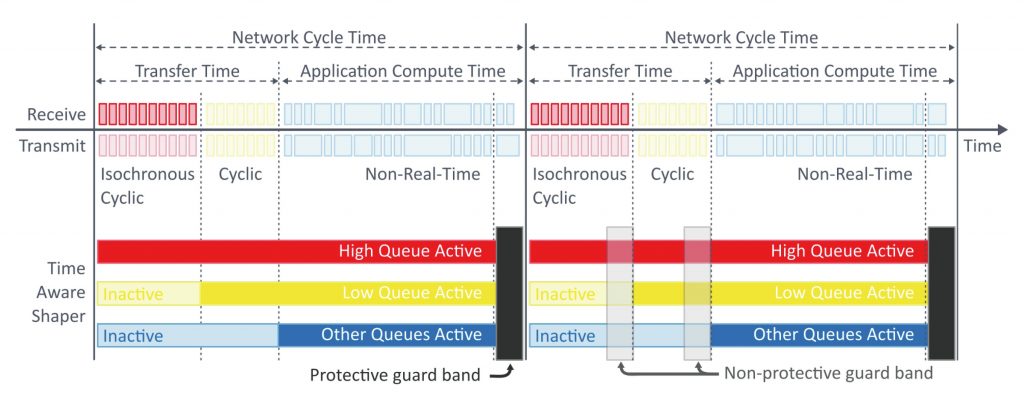 Zwei Schwerpunkte, worauf bei der Entwicklung von TSN und dessen Einbindung in Profinet geachtet wurde, sollen hier detaillierter beschrieben werden. Ein Designprinzip ist, dass es bei der Datenübertragung keinen Telegrammverlust (Zero Congestion loss) gibt. Nur so ist eine hohe Performance aller Teilnehmer in der Leitung und eine einfache Anwendung in Echtzeit möglich. Es ist leider nicht damit getan, die Pufferkapazitäten in den Bridges beliebig zu erhöhen. Zum einen ist dies schlicht zu teuer, gerade bei einfachen Anwendungen ist dies ein Ausschlusskriterium. Zum anderen entstehen dadurch Schwankungen im Netzwerk. Und schlussendlich wird man irgendwann an den Punkt kommen, dass auch diese Pufferkapazitäten nicht mehr ausreichen. Bei der Profinet- und bei den IEC/IEEE-Spezifikationen wurde dies u.a. durch eine geschickte Zuordnung von Pufferkapazitäten in Abhängigkeit von Zeiten gelöst. Dies geschieht über eine definierte Weiterleitung von Daten und deren Priorisierung. Außerdem wird durch den sogenannten Preemption-Mechanismus ein langes niederpriores Telegramm unterbrochen und nach den garantierten Echtzeitdaten wieder automatisch fortgesetzt. Digitale Souveränität in der Automation: Fraunhofer IOSB-INA entwickelt einen KI-Assistenten für die SPS-Programmierung. ‣ weiterlesen