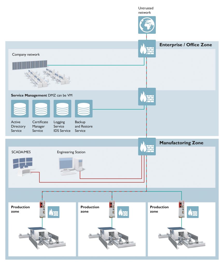 Produzierende Unternehmen sind dabei den Herausforderungen aus zwei Welten ausgesetzt: der IT aus dem Office-Umfeld und der OT (Operational Technology) aus der Fertigungsumgebung. Eine erfolgreiche Digitalisierung gelingt hier nur dann, wenn beide Welten betrachtet werden. In der IT stellen die Vertraulichkeit und Sicherheit der Daten das höchste Gut dar, wobei deren Verfügbarkeit diesen Aspekten untergeordnet ist. In der OT verhält es sich genau umgekehrt: Die Verfügbarkeit der Daten steht an erster Stelle, weil Unterbrechungen im Produktionsprozess oft erhebliche Folgen haben und zu einer verminderten Produktivität führen. Zudem zeigt sich das Einspielen von Updates häufig als große Herausforderung, da Unterbrechungen und Neustarts lediglich in einem kurzzeitigen Wartungsfenster durchgeführt werden können. Updates bergen ferner stets die Gefahr von Fehlfunktionen und daraus resultierenden Fertigungsausfällen.