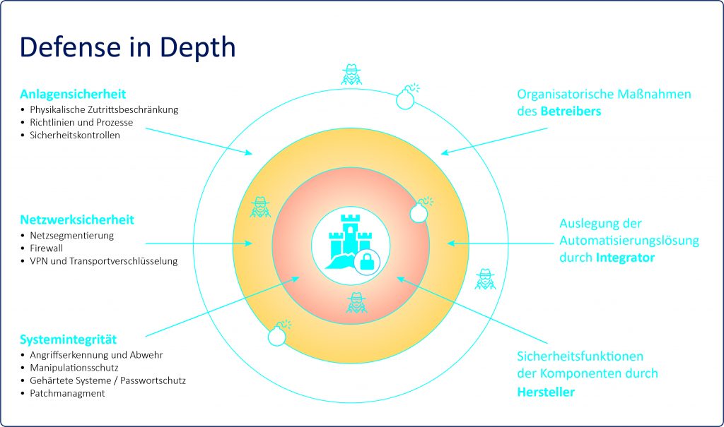 IT und OT verfolgen ähnliche Schutzziele, setzen ihre Prioritäten dabei aber sehr unterschiedlich. Wie lässt sich das Risikomanagement beider Welten harmonisieren? Die Industrienorm IEC62443 antwortet mit der Segmentierung komplexer Anlagen und dem sogenannten Defense-in-Depth-Ansatz. Für die Betriebs- und Informationssicherheit von Automatisierungsanlagen heißt das: Datensicherung, Änderungsverfolgung und -dokumentation.