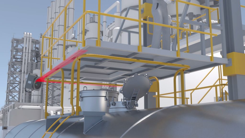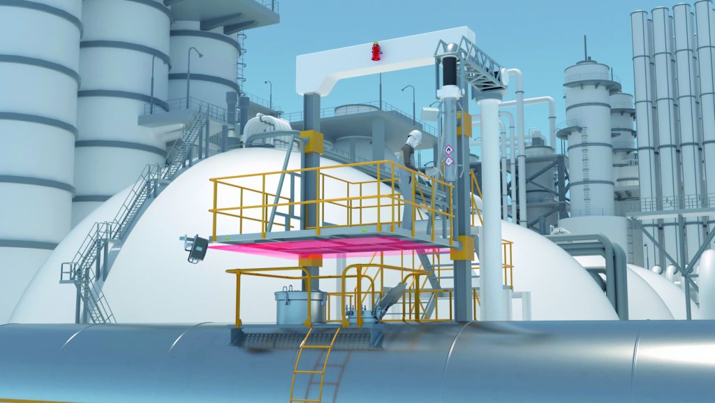 Ob im Tanklaster auf der Straße oder im Kesselwagen auf der Schiene: Wenn chemische Erzeugnisse transportiert werden, ist oftmals Vorsicht geboten, denn mehr als 40 Prozent fallen unter die Kategorie Gefahrgut. Trotz dieses hohen Anteils risikobehafteter Fracht stellt das Befüllen von Fahrzeugen und Wagen mit solchen Stoffen keine immer gleich ablaufende Standardprozedur dar. Zu unterschiedliche Eigenschaften weisen Gase, Flüssigkeiten und Granulate auf. Hinzu kommt oftmals noch eine Explosionsgefahr. Um die bei der Abfüllung chemischer Stoffe entstehenden Risiken weiß Manuel Greefrath, Verladetechnikspezialist bei der im nordrhein-westfälischen Issum ansässigen Voortmann GmbH & Co. KG Steuerungstechnik, einem Marktführer für Steuerungs-, Druckluft-, Verlade- und Sprühsysteme: „Die Befüllung von Straßentankwagen und Kesselwagen erfolgt üblicherweise nicht vollautomatisch, sondern unter Personeneinsatz von einer Bühne aus. Eine individuelle Fehlentscheidung durch einen Mitarbeiter kann dementsprechend katastrophale Folgen für Mensch und Umwelt haben. Da die Fahrzeuge bis zu vier Meter hoch sein können, bewegen sich die Mitarbeiter auf den Verladebühnen in entsprechender Höhe, was ein weiteres Schadensrisiko darstellt.“ Zudem wird in diesen Umgebungen massive Arbeitskleidung getragen, die gelegentlich sogar Atemschutzgeräte mit einschließt. Die Fehlerwahrscheinlichkeit erhöht sich durch die eingeschränkte Bewegungsfreiheit und ein verkleinertes Sichtfeld also noch weiter. Hier setzen die Experten von Voortmann mit ihren Lösungen an, zu denen vielfältige, auf spezielle Verladezwecke zugeschnittene Absturzsicherungen zählen. Seit einigen Jahren verbauen sie in diesen Konstruktionen bereits Lichtschranken und Kontaktschaltleisten. Besonderes Potenzial wurde jedoch im Bereich der Lasersensorik entdeckt.