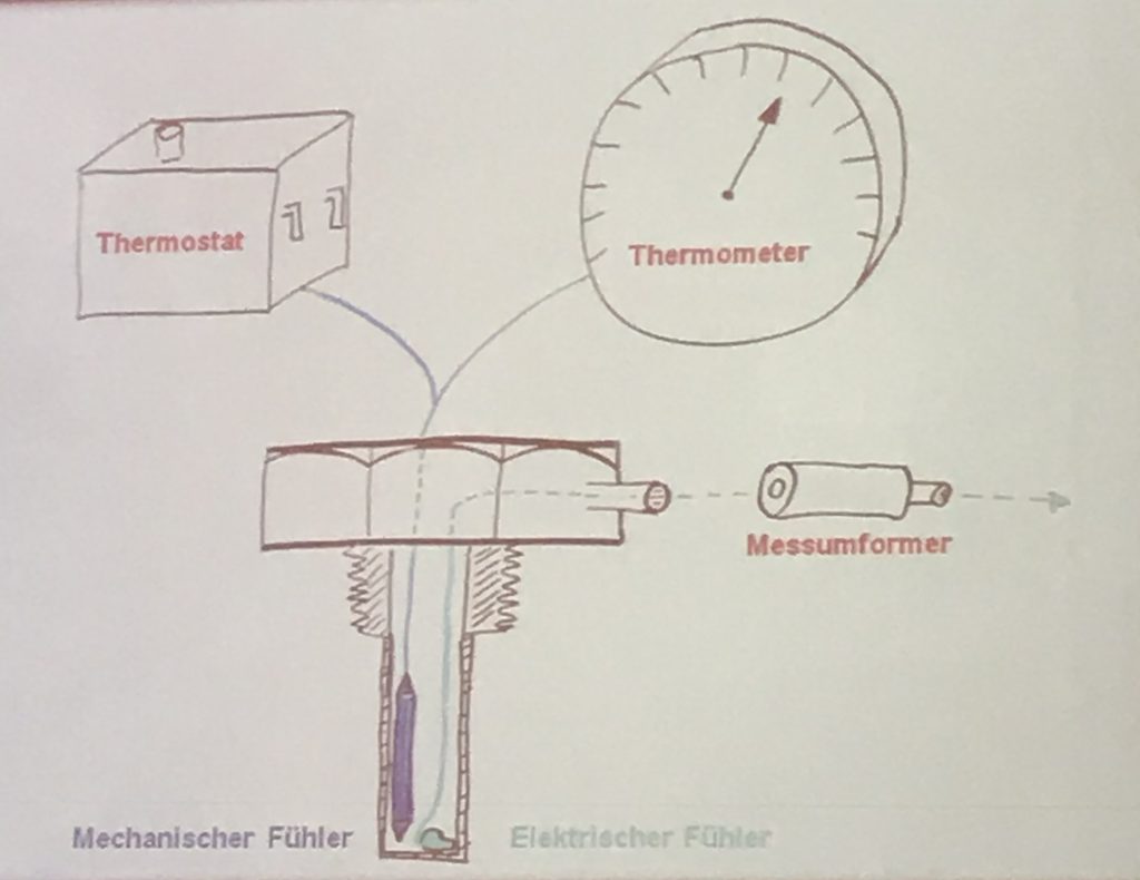 Der Dicotemp 100 ist eine smarte Armatur, mit der eine diversitäre Temperaturmessung mit einem Thermostat bzw. Zeigerthermometer und einem Platin-Chip-Temperatursensor an nur einer Messstelle realisiert werden kann, also zwei gleichzeitige Messverfahren in einer Armatur. Über einen Messumformer wird das Widerstandssignal in ein Analog- oder Digitalsignal umgewandelt. Anwender können mit der neuen Lösung bereits im Prozess eingebaute Geräte ersetzen sowie weiter an der gleichen Messstelle nutzen und zugleich funktional um eine elektrische Temperaturmessung erweitern. Die Armatur besteht aus Edelstahl und ist in verschiedenen Anschlussarten erhältlich: Zum Einschrauben oder zum Einstecken am glatten Rohr. Die Einbaulänge variiert zwischen 65 und 300mm. Das Gerät kann bei Prozesstemperaturen zwischen -40 und +260°C verwendet werden. Über einen M12-Stecker wird ein Widerstandssignal übertragen. Mittels Kabelmessumformer können weitere Ausgangssignale analog (4 bis 20mA) oder digital (IO-Link) weitergeleitet werden.