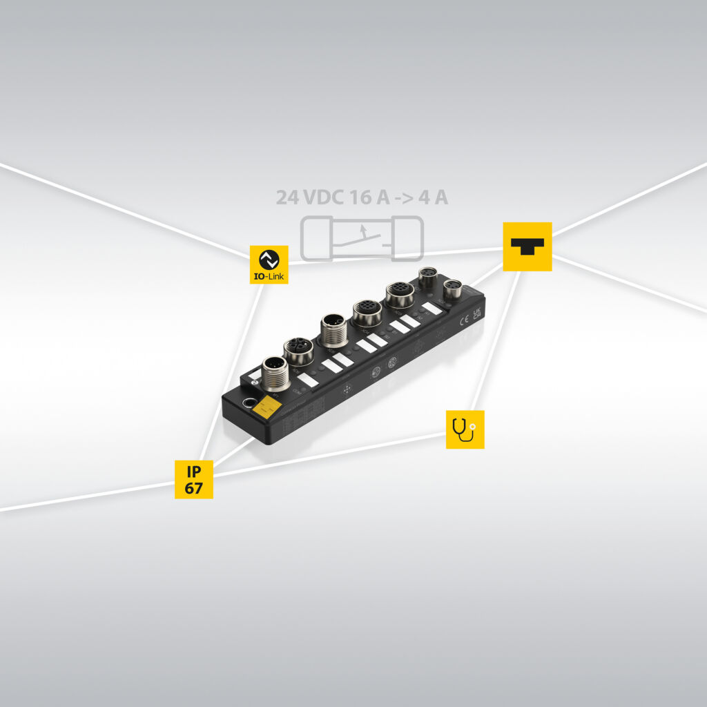 Die TBIF-Serie von Turck ist eine intelligente elektronische Sicherung für die 24-VDC-Stromversorgung im Feld. Sie schützt Lasten bis 4A selektiv und ermöglicht die Absicherung von 16 auf 4A für modulare Maschinenkonzepte ohne Schaltschrank. Über IO-Link bietet die IP67-geschützte Sicherung Fernreset, Diagnose und Zustandsüberwachung von Spannung und Strom, die Kanäle lassen sich zu- und abschalten. Für kostenoptimierte Anwendungen ist auch ein Standalone-Betrieb mit manuellem Reset direkt am Gerät möglich. So lassen sich Stillstandszeiten reduzieren und Wartungskosten senken. Die IP67-Sicherung TBIF gibt es mit zwei M8-Ausgängen, mit zwei M12-Ausgängen sowie mit jeweils zwei M8- und M12-Ausgängen.