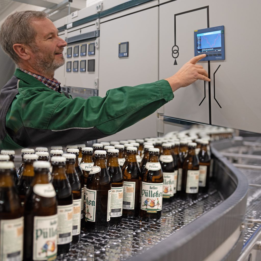 Die Anforderungen der verschiedenen Abteilungen – nicht nur bei Veltins – sind vielfältig. Während es in der Elektrowerkstatt hauptsächlich um Sicherheit, Kapazitätsplanung und Netzqualitätsparameter geht, liegt der Fokus bei der Prozessleittechnik auf Energiemanagement und der Zertifizierung nach ISO50001. Dafür bietet Janitza nicht nur Messgeräte mit offenen Schnittstellen für das hauseigene BDE-System an, sondern hat mit Gridvis auch eine zur Hardware passende, leistungsfähige Visualisierungssoftware. Während Zählerstände und Wirkleistung an das hauseigene BDE-System gehen, lassen sich mit Gridvis gleichzeitig weitere wertvolle Daten, etwa über die Netzqualität, gewinnen. Man kann sogar analysieren, ob eine Störung in der eigenen Anlage erzeugt wird oder aus dem Netz kommt. Dazu Bartmann: „Wir ziehen mehrfach Nutzen aus dem System, ganz konkret etwa bei der Energiesteuer-Rückerstattung. Die Kennzahlen bilden den Zusammenhang zwischen Energie und Produktionsmenge ab: wie effizient werden die Sude hergestellt, gibt es Trends oder Ausreißer. Hierfür liest unsere BDE die Zählerstände aus.“ Das hat gezeigt, dass beispielsweise bei der Lüftungsanlage in der Logistik Umgebungsbedingungen wie Feuchtigkeit und Temperatur eine Rolle spielen. Der Stromverbrauch steigt dann unabhängig vom Bierumsatz. Auch ein Produktwechsel in der Abfüllanlage braucht Strom, ohne dass produziert wird. All dies wird im Energiemanagement über die Regressionsanalyse in Form der sogenannten r²-Werte erfasst. Dazu Bartmann: „Idealerweise hat man einen linearen Zusammenhang zwischen Energieaufwand und Produktionsmengen. Das lässt sich aber in der Praxis nicht erreichen. Werte über 70 Prozent sind hier schon recht akzeptabel.“ Die Messungen sind so genau, dass sich Störungen und Abweichungen gut erkennen lassen. So konnte Bartmann bereits anhand eines steigenden Stromverbrauchs defekte Schwimmschalter an Entwässerungspumpen identifizieren. Ohne die Messungen wäre dies auf unbestimmte Zeit unentdeckt geblieben.