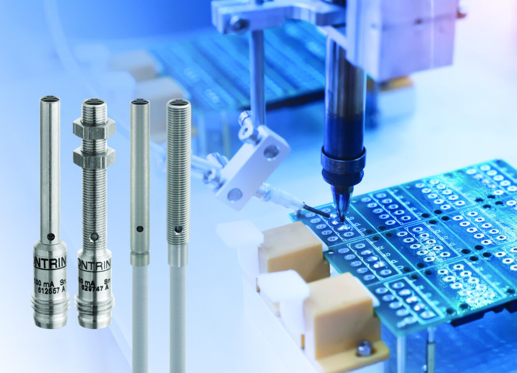 Die photoelektrischen Miniatursensoren eignen sich besonders für Anwendungen mit sehr kleinem Bauraum. Ein gutes Beispiel sind intelligente Förderbänder in Verpackungsmaschinen. Hier kommen u.a. photoelektrische Sensoren vom Typ LTI-D04MA-NSK-403 mit einem Durchmesser von lediglich 4mm zum Einsatz. Die Sensoren erkennen vorbeifahrende Kunststoff-Trays von unten und stoppen sie, damit die jeweilige Charge gescannt und eingelesen werden kann. Der Sensor kann Objekte in einem Abstand zwischen 0 bis 12mm erfassen (Infrarot-LED 880nm) und ist bei Umgebungstemperaturen im Bereich von -25 bis +65°C funktionsfähig. Mit einer Ansprechzeit von 500ms und einer Schaltfrequenz von <1kHz (Normal-Modus) detektiert der Sensor selbst sehr schnell vorbeifahrende Objekte zuverlässig. Für Applikationen, in denen der Hintergrund vom Sensor nicht erkannt werden soll, liefert Contrinex auch eine Teach-Variante (IO-Link oder Wire-Teach). Hier lässt sich die gewünschte Entfernung exakt einstellen.