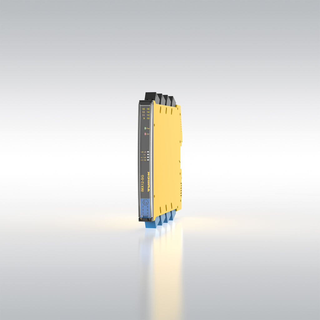 Turck erweitert sein Interface-Portfolio um ein schnelles DMS-Auswertegerät für Kraftmessapplikationen in explosionsgefährdeten Bereichen. Das IMX12-SG verfügt über eine Repeaterfunktion und kann zur Signalwandlung bei Widerstandsänderungen an DMS-Brücken eingesetzt werden. Weiter bietet er eine Reaktionszeit von weniger als 10ms, kombiniert mit einer flexiblen Ausgangsbeschaltung per DIP-Schalter sowie der galvanischen Trennung in einem 12,5mm schmalen Gehäuse. Somit werden Störungen oder Ausgleichsströme, die durch Potenzialverschleppungen entstehen können, ausgeschlossen – ein entscheidender Sicherheitsvorteil gegenüber Lösungen mit Zener-Barrieren, die auf ein sehr gut gewartetes Erdungskonzept angewiesen sind. Der Betrieb in der explosionsgefährdeten Zone 2 ist in einem Schutzgehäuse zulässig.