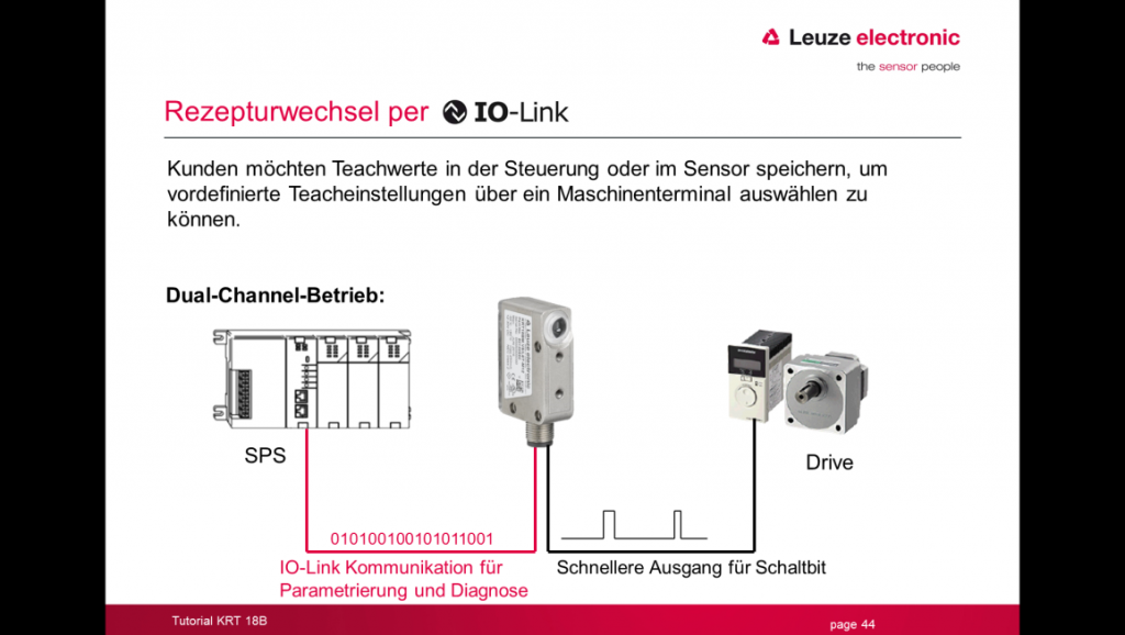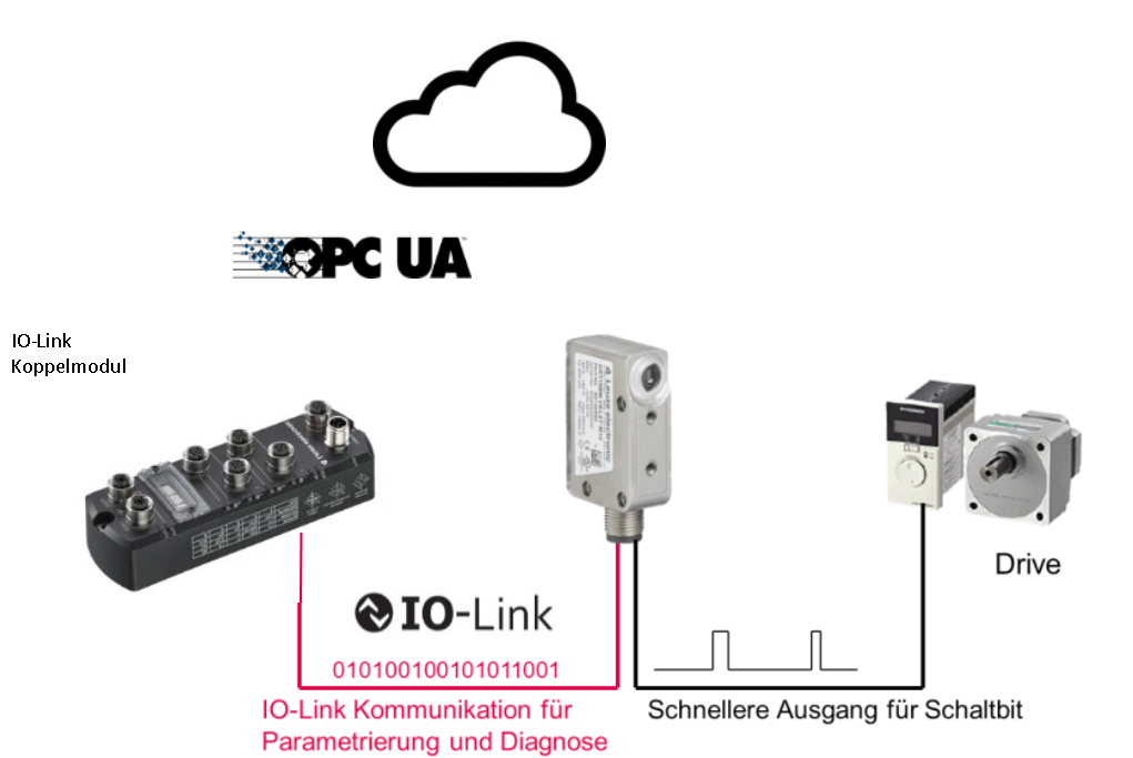 b) Binär schaltende Sensoren (Dual Channel mit IioT bzw. I4.0) Im Rahmen von IIoT und Industrie 4.0 müssen Daten z.B. für das Monitoring und zur Parametrierung möglichst ortsunabhängig und weltweit anderen Automatisierungsteilnehmern zur Verfügung stehen. In der Regel erfolgt dies über Cloudlösungen. Gelten die identischen Voraussetzungen wie bei a) beschrieben, so ist statt der IO-Link-Verbindung zur SPS eine solche Verbindung zu einem IO-Link- Koppelmodul mit Ethernet-Schnittstelle und OPC-UA-Kommunikationsprotokoll notwendig. Die Anbindung an die Cloud erfolgt dann z.B. über ein IoT Edge Gateway. Digitale Souveränität in der Automation: Fraunhofer IOSB-INA entwickelt einen KI-Assistenten für die SPS-Programmierung. ‣ weiterlesen