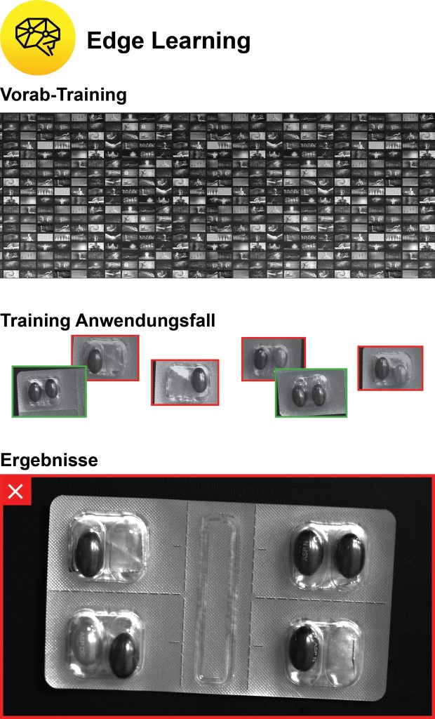 Komplexere KI-gestützte Deep-Learning-Algorithmen sind ebenfalls in der Lage, OCR durchzuführen. Sie erreichen unter optimalen Bedingungen eine Genauigkeit von nahezu 100 Prozent und können jede Art von Text lesen lernen. Ihr Nachteil: Sie sind zu langsam für den unmittelbaren Einsatz an Fertigungs- bzw. Logistiklinien, erfordern hochentwickelte Prozessoren sowie umfangreiches Fachwissen bei der Implementierung. Für die jeweilige Anwendung vorab trainierte Edge-Learning-Tools erreichen aufgrund ihrer Spezifität die Genauigkeit von generalisierten Deep Learning-Systemen und sind dabei in der Lage, die von der Industrie geforderten Geschwindigkeiten zu erzielen.