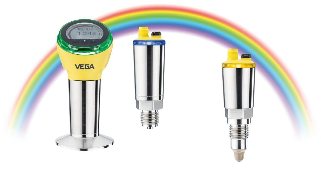 Mit einer neuen kompakten Geräteserien an Drucksensoren und Grenzschaltern komplettiert Vega sein Messtechnikportfolio für hygienesensible Prozesse und geht auch einen großen Schritt mit seinem Produktportfolio in Richtung Maschinenbau. Die Produktfamilien Vegabar und Vegapoint sind ausgelegt auf Standardapplikationen, gehen jedoch keine Kompromisse bei der Qualität ein. Ein einheitliches Hygieneadaptersystem bringt die notwendige Flexibilität, die es braucht, um Aufwand und Lagerhaltung überschaubar zu halten. Die Prozessanschlüsse lassen sich nach Bedarf auswählen und den Anforderungen vor Ort anpassen. Alle Schaltzustände sind visuell dank einer Rundum-Schaltzustandsanzeige aus jeder Richtung erfassbar. Die Farbe des Leuchtrings bleibt selbst bei Tageslicht gut erkennbar, und ist aus über 256 Farben frei wählbar. Auf den ersten Blick ist damit zu sehen, ob ein Messvorgang läuft, der Sensor schaltet oder eine Störung im Prozess vorliegt. Für eine einfache Kommunikation sorgt IO-Link. Die neuen Serien lassen sich per Smartphone oder Tablet auslesen und konfigurieren.