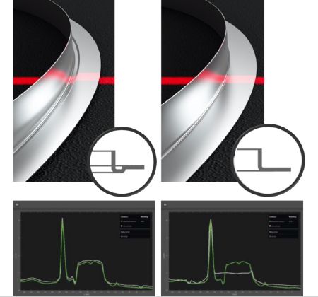 Der Messbereich des Linien-Scanners liegt im Bereich von 150 bis 300 mm, wobei die Proportionen des aufgenommenen Höhenprofils unabhängig vom Abstand zwischen Sensor und Objekt sind. Die Ausrichtung und Positionierung des Sensors ist dadurch unkompliziert. Der Anschluss geschieht über einen 5-poligen M12-Steckverbinder. Ebenso einfach sind die Installation und die Inbetriebnahme; Eine externe Beleuchtung ist genauso wenig erforderlich wie eine Abschirmung gegenüber Fremdlicht. Das Einlernen von Referenzobjekten erfolgt mittels der drei Tasten direkt am Gerät, ohne dass ein PC oder eine spezielle Software benötigt wird. Das Menü im integrierten Farbdisplay, das zwischen zehn verschiedenen Sprachen umgeschaltet werden kann, unterstützt den Anwender dabei. Eine projizierte Hilfslinie erleichtert die Festlegung des passenden Bereichs auf dem Objekt. Sobald das Höhenprofil eines Referenzobjekts eingelernt wurde, können Objekte mit der eingelernten Kontur verglichen werden. Eine Schalt-LED direkt am Sensor signalisiert das Erkennen von Gutteilen. Auf diese Weise lassen sich abweichende Teile identifizieren und direkt aus dem Fertigungsprozess ausschleusen. Der gesamte Inbetriebnahme-Prozess ist somit innerhalb weniger Minuten erledigt.