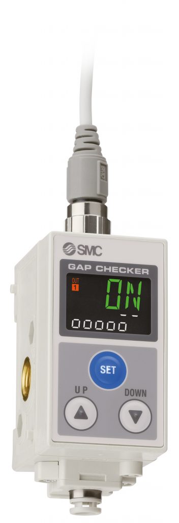 Mittels IO-Link-Schnittstelle liefern die Luftspaltsensoren der Serie ISA3#L von SMC Informationen über den Versorgungsdruck, den Gegendruck, die Spaltgröße sowie weitere Diagnoseinformationen mit den Prozessdaten an übergeordnete Steuerungseinheiten. Die Luftspaltsensoren lassen sich mit oder ohne Steuerungseinheit betreiben. Auf einer Mehrfachanschlussplatte passen bis zu sechs Einheiten, die links- oder rechtsseitig an eine Steuerung angeschlossen werden können. Die Modelle verfügen über ein zweizeiliges, digitales Display. In drei Farben wird darauf der Abstand des Werkstücks von der Auflagefläche signalisiert. Ein weiteres Merkmal der Sensoren ist ihre einfache Bedienung.