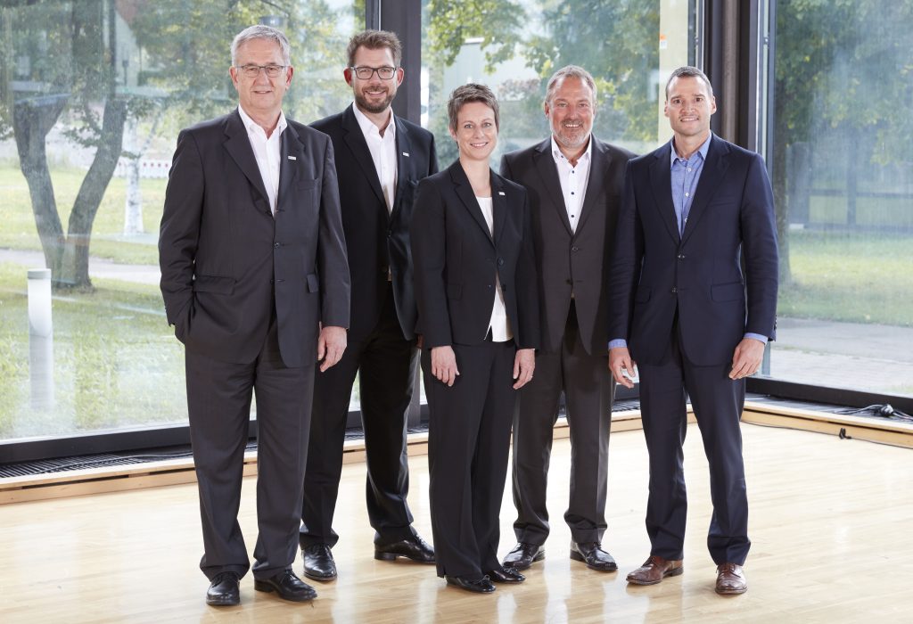 Die Geschäftsführung von Balluff und Matrix Vision (v.l.): Michael Unger, Florian Hermle, Katrin Stegmaier-Hermle (Balluff), Uwe Furtner und Erhard Meier (Matrix Vision). (Foto: Balluff) – Bild: Balluff GmbH