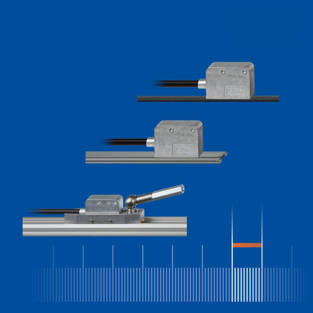 ASM stellt die Magnetband-Positionssensoren Posimag Lin vor. Das berührungslose, hochauflösende Messsystem ist schmutzunempfindlich, verschleißfrei und eignet sich für Messlängen bis 30m. Es steht in drei Varianten zur Verfügung: mit Magnetband zur direkten Klebemontage (ungeführter Sensorkopf; PMIS3/ PMIB3), mit Flachprofil, das in 3m-Abständen steckbar ist (ungeführter Sensorkopf; PMIS3/ PMIB3/ PMFP) oder mit einem Hochprofil mit integrierter Linearführung (geführter Sensorkopf; PMIS3/ PMIB3/ PMHP/ PMGW3). Bestandteil der Posimag-Technologie ist das aus flexiblem Stahl gefertigte, 10mm breite Maßband, auf dem eine Magnetschicht aufgebracht ist. Die ist in regelmäßigen Abschnitten magnetisiert und mit dem Trägerband fest verbunden. Zur Positionsbestimmung bewegt sich der Sensorkopf mit geringem Abstand entlang des Magnetbandes. Die Auflösung ist dabei bis zu 1μm genau.