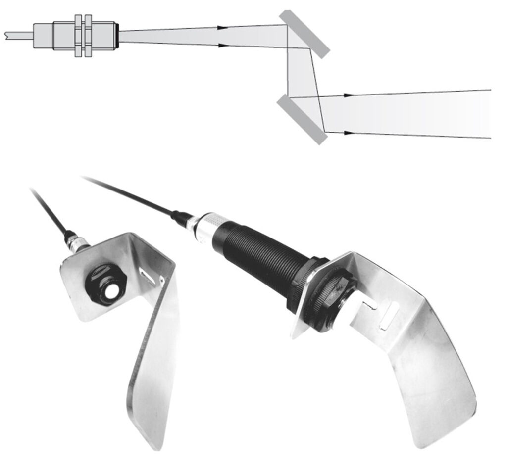 Naturgemäß strahlen Ultraschallsensoren den Schall immer nach vorne ab. Doch in vielen Anwendungen erschweren räumliche Gegebenheiten und Montagesituationen eine direkte Ausrichtung des Sensorgehäuses auf das zu überwachende Objekt. Die Umlenkung der Schallkeule mittels geeigneter Reflektorwinkel bietet eine praktikable Lösung. Neben Ultraschallsensoren umfasst das Programm des Herstellers abgestimmte 90°-Kunststoffreflektoren, Fokussieraufsätze und variable Metallreflektoren zur Schallwinkel-Ausrichtung.