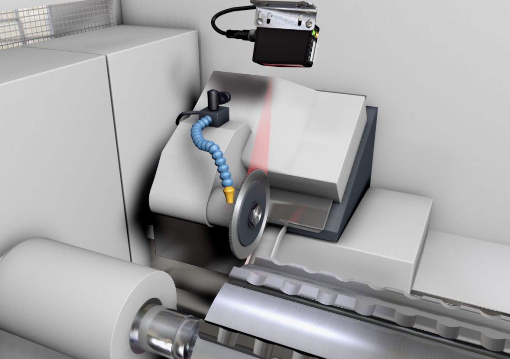Ob Bahnkantenregelung (links), die Messung des Durchmessers einer Schleifscheibe (Mitte) oder die Prüfung der Objektorientierung in der Produktion (rechts), die berührungslos arbeitenden und hochpräzisen Lichtschnitt-sensoren sind hinsichtlich ihrer Einsatzmöglichkeiten sehr flexibel und verfügen alle über die gleiche Bauform. – Bild: IPF Electronic GmbH