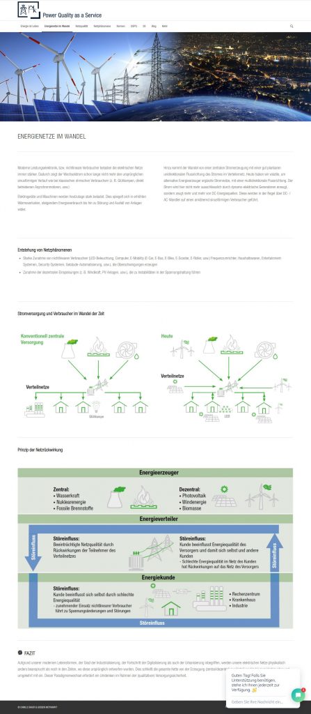 Das Thema Netzqualität nimmt im Kontext von Energiewende und Smart-Grid bzw. Smart-Metering rasant an Bedeutung zu. Doch was heißt dies für den Verteilnetzbetreiber, die Behörden, die Industriebetriebe, die Elektrokontrolleure, die Elektrofachbetriebe, die Fachverbände, die Infrastrukturbetriebe wie z.B. Flughafen, Bahn usw.? Für die Interessengruppen, ob heute bereits mit dem Thema der Netzqualität vertraut oder auch nicht, will der neue Internetauftritt von Camille Bauer zum Thema Netzqualität nützliche Informationen aus Theorie und Praxis bereitstellen. Und genau das soll mit dem Namen „Power Quality as a Service“, bereits bekannt bei den Software-Dienstleistungen, damit unterstrichen werden. Die Webseite vermittelt Wissen über relevante Normen, Messmethoden, warum und wo Netzqualität eigentlich ein Thema ist, was die Phänomene sind, worauf man Acht geben sollte oder wie man gute Netzqualität sicherstellen kann.