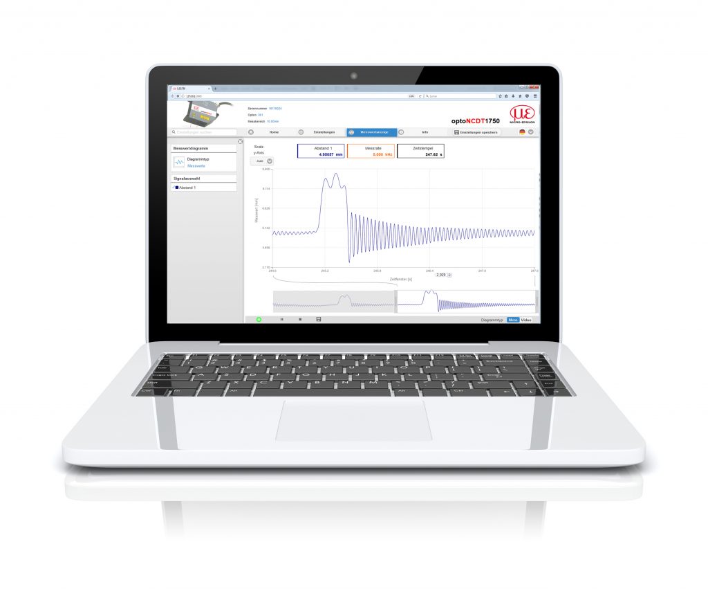 Auf dem Gebiet der Weg- und Abstandsmessung bietet er eine höhere Reproduzierbarkeit und bessere Linearität als Standardmodelle, des Weiteren ist er mit vielen neuen Softwarefunktionen ausgestattet. Mit 7,5kHz arbeitet das Modell dreimal so schnell wie sein Vorgänger und auch die Reproduzierbarkeit konnte um den Faktor zwei verbessert werden. Mit einem Wert von 0,06% des Messbereichs präsentiert der optoNCDT 1750 zudem eine Verbesserung der Linearität um 25%. Der Laser-Triangulator arbeitet mit einer patentierten Oberflächenkompensation, die hohe Genauigkeit und schnelle Ergebnisse bei wechselnder Reflektivität realisiert. Eine Besonderheit ist zudem die Peakauswahl, die Messungen auf transparent beschichteten Materialien und Objekten hinter Glas ermöglicht. Die hohe Messfrequenz ist zur Analyse mechanischer Schwingungen nötig. Optimierte Objektive haben eine Verbesserung der Linearität zur Folge. Das Web-Interface vereinfacht die Einstellung des Sensors für den Anwender. Mit den vorhandenen Presets kann er den Sensor für verschiedene Oberflächen mühelos optimieren. Wer den Sensor schnell in Betrieb nehmen möchte, kann auf die vorhandenen Presets zurückgreifen, die auch für schwierige Oberflächen wie semitransparente Kunststoffe und Keramiken, Leiterplattenmaterial oder carbon- und glasfaserverstärkte Kunststoffe optimiert sind. Integrierte Hilfetexte im Web-Interface reduzieren den Zeitaufwand für die Parametrierung ebenfalls. Ausgegeben werden die Ergebnisse analog oder digital über eine RS422-Schnittstelle. Er verfügt außerdem über zwei Schaltausgänge und einen Eingang zur Steuerung verschiedener Funktionen. Für Anwender, die bereits den optoNCDT 1700 verwenden, ist der Umstieg einfach, da die Modelle zueinander kompatibel sind.