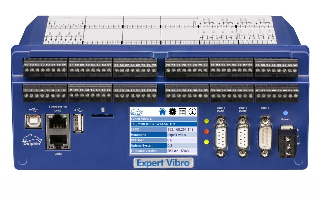 Nach den Varianten mit 8 bzw. 16 Schwingungseingängen ist das Schwingungsmessgeräts Expert Vibro nun auch mit 4 bzw. 12 Eingängen erhältlich. Modernste Prozessortechnologie ermöglicht auf kleinstem Raum Abtastraten bis 50kHz pro Kanal. 24 Bit-A/D-Wandler garantieren eine äußerste Genauigkeit. Es kann flexibel zwischen der Messung von Spannungen, Strömen, IEPE- oder Wellenschwingungssensoren umgeschaltet werden. Integrierte Komparatoren und Digital-Eingänge erlauben eine flexible Triggerung. Messwerte werden online überwacht und bei Grenzwertverletzungen können Digital-Ausgänge in Millisekunden geschaltet werden. Dank eines internen Datenspeichers von bis zu 14GB können die Geräte komplett autark arbeiten.