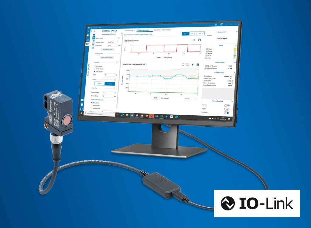 Der IO-Link-Standard eröffnet in der Automatisierung viele neue Anwendungsmöglichkeiten. Den Nutzern stehen mehr Sensorfunktionen und -einstellungen, neue Steuerungsmodelle und neue Parametrierkonzepte zur Verfügung. Richtig eingesetzt, führen diese erweiterten Möglichkeiten zu einer höheren Anlageneffizienz und größeren Flexibilität. Sie erhöhen aber auch die Komplexität in der Auswahl und Einstellung von IO-Link Sensoren. Um all diese Funktionen und Potenziale unkompliziert zu nutzen, hat Baumer die Sensor Suite entwickelt. Mit Hilfe dieser Software können Entwicklungsingenieure die effizienten Evaluations- und Testmöglichkeiten von IO-Link Geräten besser nutzen. Plug&Work beschleunigt den Entwicklungsprozess, und die intuitiven Visualisierungen sollen die präzise Parametrierung erleichtern.
