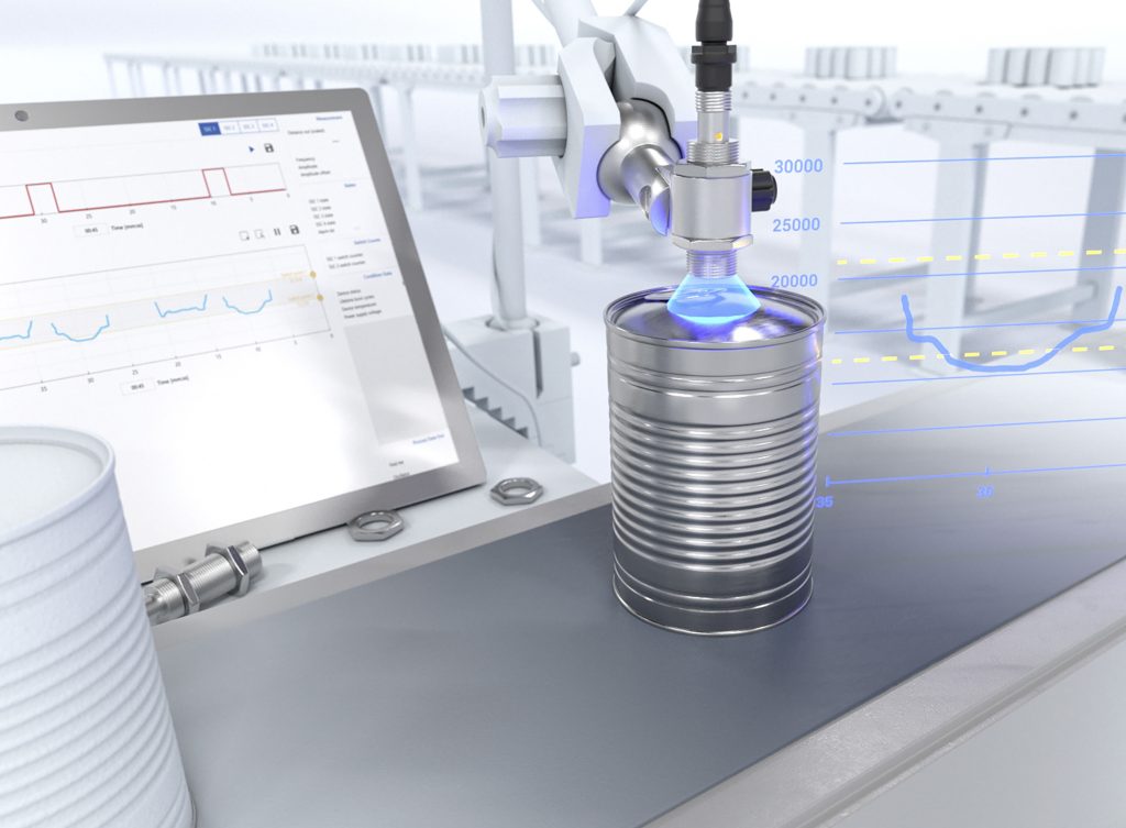 Ein Hersteller von Katzenfutter möchte fehlerhafte Dosen aussortieren. Eines der Qualitätsmerkmale ist ein gerader Deckel, denn eine ausgebeulte Dose deutet auf verdorbenen Inhalt hin. Die Herausforderung für den Produzenten: Es gibt viele verschiedene Dosenhöhen und -durchmesser, die zu unterschiedlichen Zeiten über das Transportband laufen. Für die Bewertung, welche Toleranzen für jedes Dosenmaß passend sind, muss das Schaltverhalten der Sensoren entsprechend in einfacher Weise den Formaten angepasst werden können.