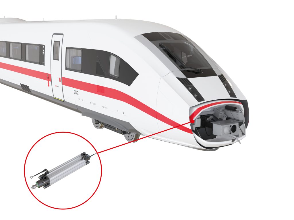 Das Kupplungssystem der Triebwagen von Hochgeschwindigkeitszügen ist durch GFK-Halbschalen aerodynamisch verkleidet, die sich für den Zugang zur Kupplung über Pneumatikzylinder öffnen lassen. Die Position der Zylinder (aus- oder eingefahren) muss überwacht werden, da bei geöffneten Halbschalen die zulässige Maximalgeschwindigkeit des Triebwagens aus Sicherheitsgründen begrenzt wird. Die Pneumatikzylinder unterliegen extrem rauen Betriebsbedingungen unter allen erdenklichen Umgebungseinflüssen, weil die GFK-Halbschalen das Kupplungssystem nicht hermetisch dicht abschließen. Anforderungen, auf die auch die Sensorik zur Abfrage der Zylinderposition trifft.