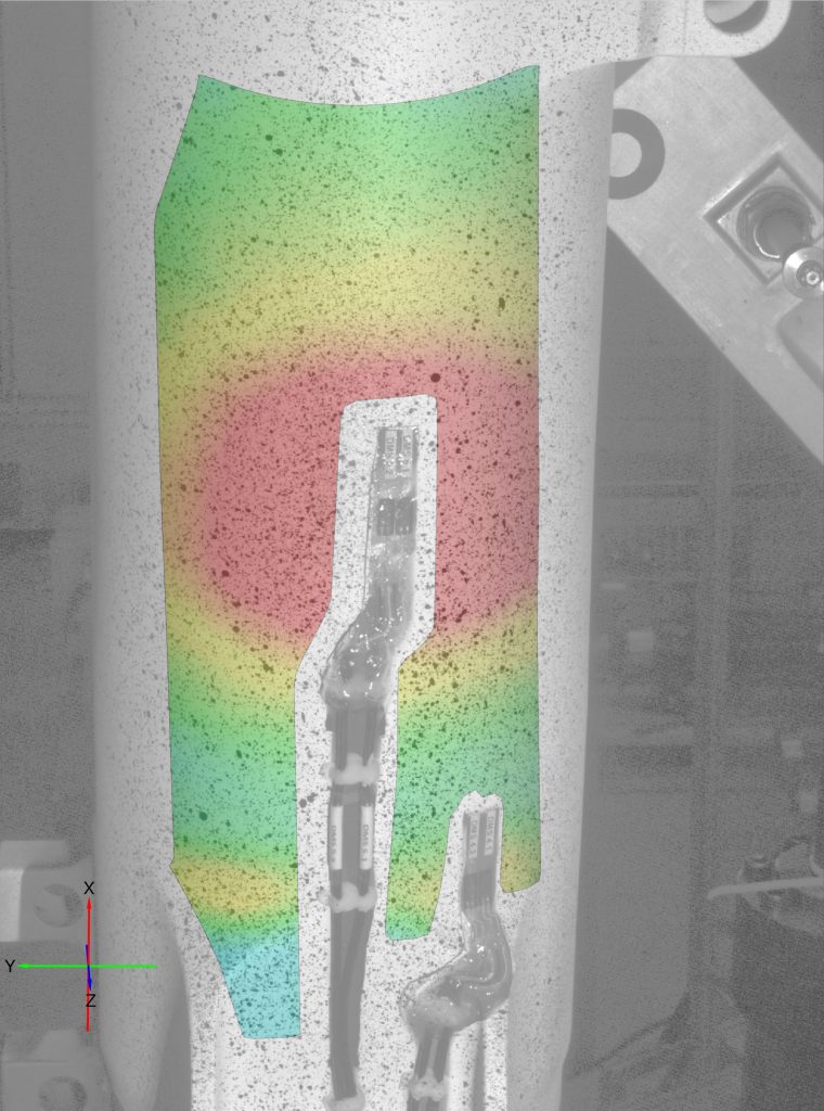 Die Durchführung der Testkampagnen der bis zu 5m großen Prüflinge erfolgt in eigens dafür konstruierten Prüfvorrichtungen mit entsprechenden Belastungs- und Messeinrichtungen. Neben den laufenden Limit-Strength-Tests führt Liebherr-Aerospace für die Zulassung auch Ermüdungstests durch, die mitunter mehr als zwölf Monate dauern und mehr als 2 Millionen Belastungszyklen beinhalten können. Die Fahrwerksstruktur wird bei den statischen Zulassungstests mehreren kritischen Lastfällen ausgesetzt. Hierbei steht insbesondere die punktuelle Analyse des Komponentenverhaltens unter Bodenlasten im Fokus, da diese den Belastungszustand des Fahrwerks während der Landung und der Rollwege des Flugzeugs beschreiben. Die optischen Sensoren liefern Messdaten der Bauteilgeometrien sowie der 3D-Verschiebungen und geben Aufschluss über das Verhalten der Bauteile unter Last. Für die Testingenieure ist vor allem die Frage interessant, ob sich bei den Bauteilen bleibende Verformungen einstellen und wie groß die Sicherheiten diesbezüglich sind. Anhand der gewonnenen Messdaten werden nicht nur spezifizierte Erfolgskriterien geprüft, sondern gleichzeitig Simulations- und Konstruktionsprozesse verifiziert und ggf. angepasst, um die Realität bestmöglich abzubilden.