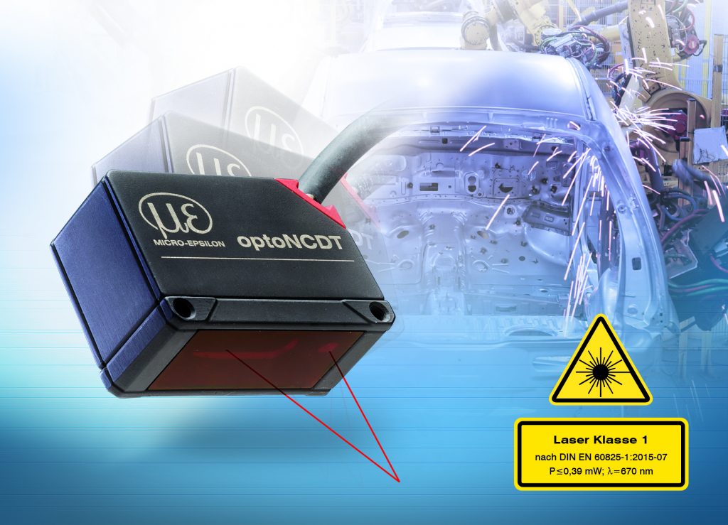 Die Laser-Triangulationssensoren OptoNCDT 1420 messen berührungslos Weg und Abstand und erfassen dank ihres kleinen Messfleckdurchmessers auch kleinste Objekte zuverlässig. Die Lasersensoren verwenden üblicherweise einen Halbleiterlaser mit einer Wellenlänge von 670nm (sichtbar, rot) und einer Ausgangsleistung von max. 1mW. Damit fällt ein Großteil der Sensoren unter die Laserklasse 2. Bei bestimmungsgemäßer Verwendung erfordert die Laserklasse 2 keine besonderen Schutzmaßnahmen und ermöglicht dadurch auch den Einsatz der Sensoren in industriellen Messaufgaben sowie Anwendungen im Bereich Forschung & Entwicklung. Vereinzelt stellen Anwender jedoch höhere Anforderungen an die Laserklasse der Sensoren und fordern Sensoren mit Laserklasse 1. Bei dieser liegt die abgestrahlte Leistung bei maximal 390µW und damit weit unter der von Laserklasse-2-Sensoren. Speziell in der Automobilfertigung stellen Hersteller erhöhte Ansprüche an die Sicherheit ihrer Produktionsanlagen und fordern daher den Einsatz von Sensoren mit Laserklasse 1. Dies ist beispielsweise der Fall, wenn Handlingsgeräte zum An- oder Einbau von Interieurteilen und Lasersensoren zur Ausrichtung genutzt werden. Unter ungünstigen Umständen kann es dazu kommen, dass der Werker direkt in den Laserstrahl bzw. die Reflexionen des Strahles blickt. Bei höheren Laserklassen kann der Strahl irreparable Schäden auf der Netzhaut des Betroffenen verursachen. Mit den neuen Modellen steht nun ein Sensor zur Verfügung, der sowohl in seiner Performanz als auch bezüglich der Laserklasse die Anforderungen der Automobilindustrie erfüllt. Auch im Bereich der Pharmaindustrie wird die Laserklasse 1 häufig vorausgesetzt. In einigen Anwendungen werden Lasersensoren eingesetzt, um Abstände zu empfindlichen Oberflächen zu ermitteln oder Substrate zu vermessen. Klasse-2-Laser können unter bestimmten Umständen eine chemische oder thermische Reaktion der Oberfläche herbeiführen. In diesen Bereichen werden Sensoren mit der Laserklasse 1 eingesetzt, da die geringe Laserleistung keine chemische oder thermische Reaktion hervorruft.