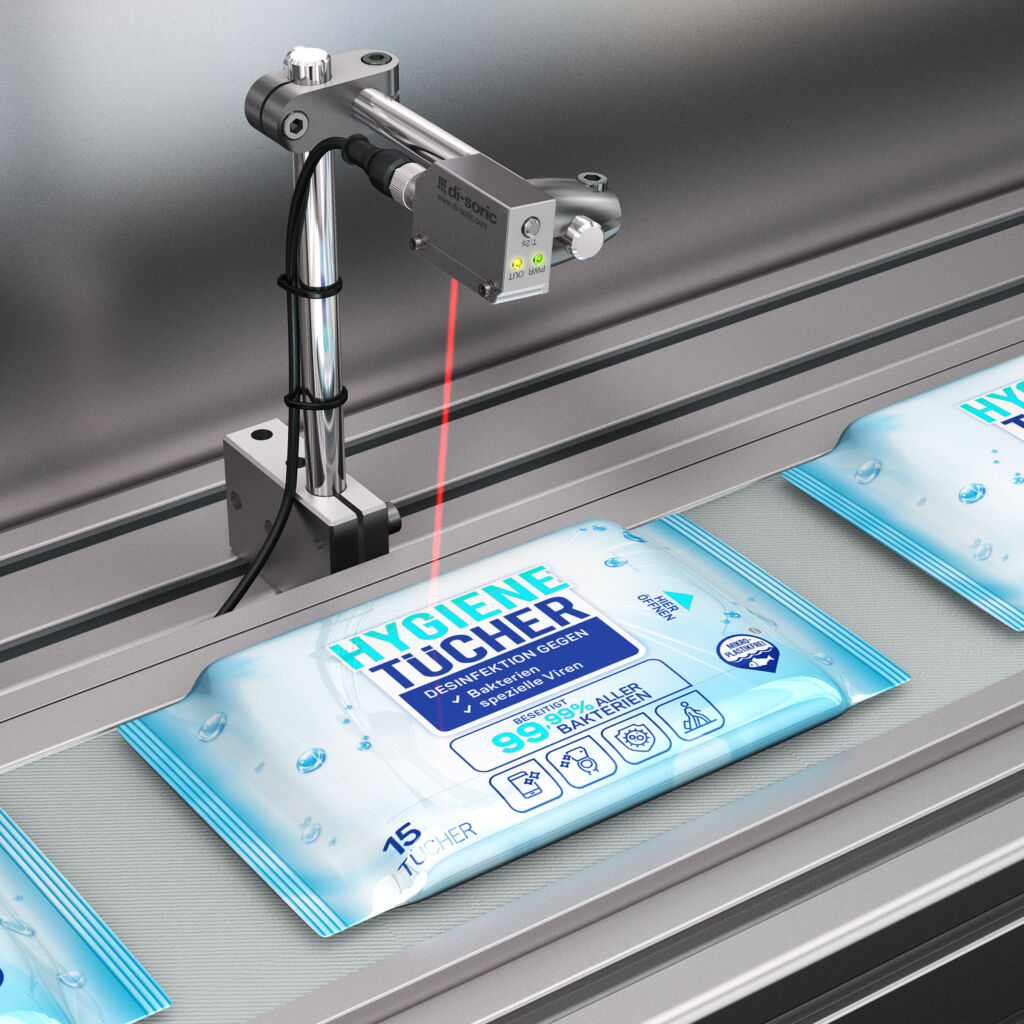 Der eingesetzte Laser-Reflexionslichttaster vom Typ OH34-LR im robusten Edelstahlgehäuse schaltet zuverlässig, sobald er eine Abweichung beim Abstand, der Distanz oder Intensität detektiert. Zuvor hat der Maschineneinrichter den Lichttaster denkbar einfach und in kurzer Zeit eingestellt und in Betrieb genommen. Unterstützt durch blinkende Status-LEDs drückt er dazu die Teach-Taste am Gerät: Nach 2 bis 4s ist der Abstand zum Objekt, nach 4 bis 6s ein kleines Schalt-Fenster und nach 6 bis 8s der so genannte Deviation Detection Mode (DD-Mode) eingelernt. Der DD-Mode wertet simultan den Abstand und die Intensität aus. Er erkennt auf diese Weise zuverlässig und augensicher mit Laser-Klasse 1 sämtliche Objekte vor dem eingelernten Hintergrund.