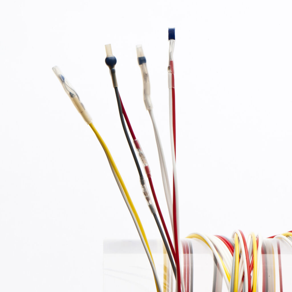 Delta-R hat sich auf die Entwicklung und Fertigung kundenspezifischer Temperatursensoren spezialisiert und produziert im Auftrag namhafter Sensor- und Motorenhersteller. Die eingesetzten Temperatursensoren – auch bekannt als Temperaturfühler, Kabelthermometer oder Wickelkopf-Sensoren – dienen der zuverlässigen Überwachung von Elektromotoren und Batteriesystemen. Technisch handelt es sich um hochpräzise Sensorelemente mit Kabelverlängerung und spezieller Schrumpfschlauch-Isolation für erhöhte elektrische Sicherheit. Die Sensoren basieren in der Regel auf bewährten Pt100- oder Pt1000-Elementen, die in 2-, 3- oder 4-Leiterschaltung ausgeführt werden. Abhängig von den Anforderungen an Temperatur- und Spannungsfestigkeit kommen hochisolierende Schrumpfschläuche aus Kynar oder PTFE zum Einsatz. Je nach Spezifikation werden die Sensoren einfach oder mehrfach isoliert. Die gewünschte Isolationsfestigkeit definiert dabei sowohl Isolationslänge als auch Positionierung der verwendeten Materialien. Typischerweise werden die Sensorelemente mit Litzen im Bereich AWG 20 bis AWG 28 verlängert. Der Einsatztemperaturbereich der Kabelfühler mit Schrumpfschlauch-Isolation reicht von -70 bis +260°C und deckt damit ein breites Anwendungsspektrum in der Elektromobilität ab.
