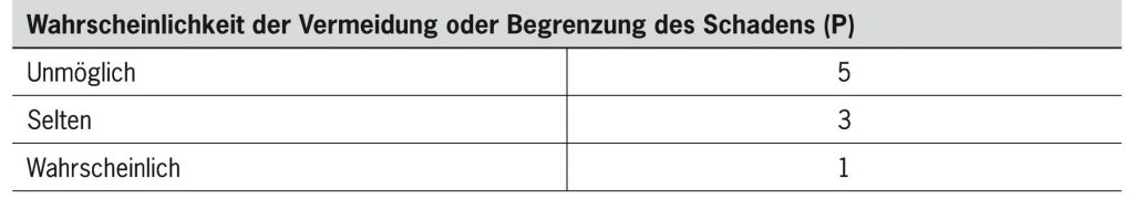 Im nächsten Schritt muss nun die Wahrscheinlichkeit zur Vermeidung des Schadens beurteilt werden.