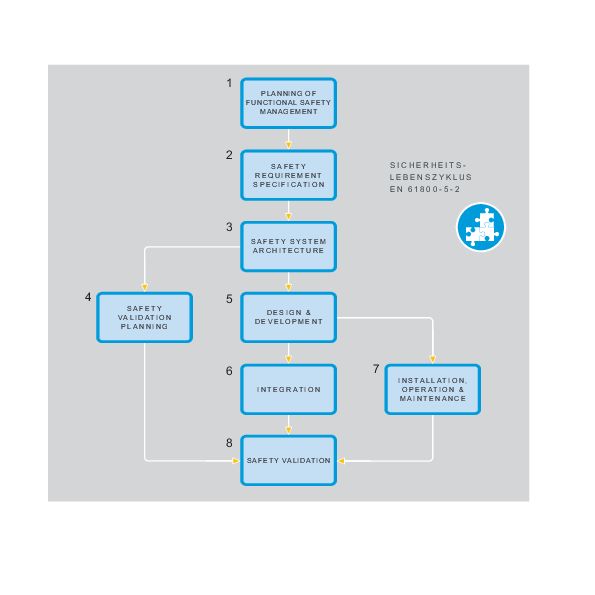 Bei der Realisierung von funktional sicheren Komponenten der industriellen Automation ist zunächst eine intensive Beleuchtung des normativen Umfelds unumgänglich. Die passende Produktnorm, die EN61800-5-2, ist als B-Norm unter der EU-Maschinenrichtlinie gelistet. Für das Management der funktionalen Sicherheit, das u.a. Themenbereiche wie Verantwortlichkeiten, Qualifikation von Mitarbeitern und qualitätssichernde Maßnahmen einfordert, verweist diese Produktnorm direkt auf die IEC61508-1. Dieser Teil wird in dem Beitrag jedoch nicht im Detail betrachtet, da es sich dabei um einen komplexen, separaten Themenbereich handelt. Auf der technischen Seite werden die Anforderungen für die Hardware-Elektronik und die Gerätesoftware beleuchtet. Die grundlegendste Antriebssicherheitsfunktion Safe Torque Off (STO) kann prinzipiell rein hardwarebasiert umgesetzt werden. Die EN61800-5-2 gibt dazu Hilfestellung. Interessant hingegen wird es, wenn komplexere Antriebssicherheitsfunktionen gefordert sind. In der Praxis werden derartige Funktionen in Software realisiert. Für Software verweist die Antriebsnorm auf die IEC61508-3. Mit steigendem Sicherheitsintegritätslevel (SIL) werden sehr hohe Anforderungen an die Softwareentwicklung, wie etwa die verwendeten Methoden und die durchzuführenden Verifikationen, einschließlich der verwendeten Werkzeuge, gestellt.