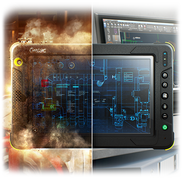 Mit dem neuen EX80 präsentiert Getac sein erstes vollrobustes Tablet zertifiziert nach UL913 und ATEX/IECEx für den Einsatz in explosionsgefährdeten Umgebungen, wie sie unter anderem im Umgang mit Ölen und Gasen sowie in Lagerstätten für petrochemische Produkte, Produktionsgüter und Munition entstehen. Daher verfügt das Tablet über ein versiegeltes und antistatisches Gehäuse zur Regulierung der Oberflächentemperatur, welches die Wahrscheinlichkeit einer Explosion des Gerätes aufgrund elektrostatischer Ladungen, heißen Oberflächen, Hitzeenergie oder Reibung minimiert. Das Tablet ist nach ATEX und IECEx Zone 0 zertifiziert ist und entspricht den Sicherheitsstandards für eigensichere Geräte UL913 Klasse I und II der Sparte 1. Das kompakte, ergonomische Design des EX80 Tablets ermöglicht Nutzern die komfortable Bedienung mit einer Hand, während der 8″ große IPS-Touchscreen Platz für die Dokumentenanzeige und die Datenerfassung bietet. Das bei Sonnenlicht gut ablesbare LumiBond 2.0 WXGA-Display (HD ready) mit einer Helligkeit von 600Nits verbindet mithilfe eines klaren Harzes das widerstandsfähige Displayglas, den kapazitiven Touchsensor sowie das LCD-Element optisch zu einem einzigen Panel und verbessert auf diese Weise Haltbarkeit und Ablesbarkeit. Zudem erweisen sich unterschiedliche Touchmodi für Regen, Handschuhe und die Stifteingabe als praktisch für das Erstellen von Notizen oder die Erfassung von Daten während des Einsatzes. Mit mehr als acht Stunden Betriebsdauer pro Ladevorgang wartet das Tablet auf. Ein Ladedock ist im Lieferumfang enthalten.
