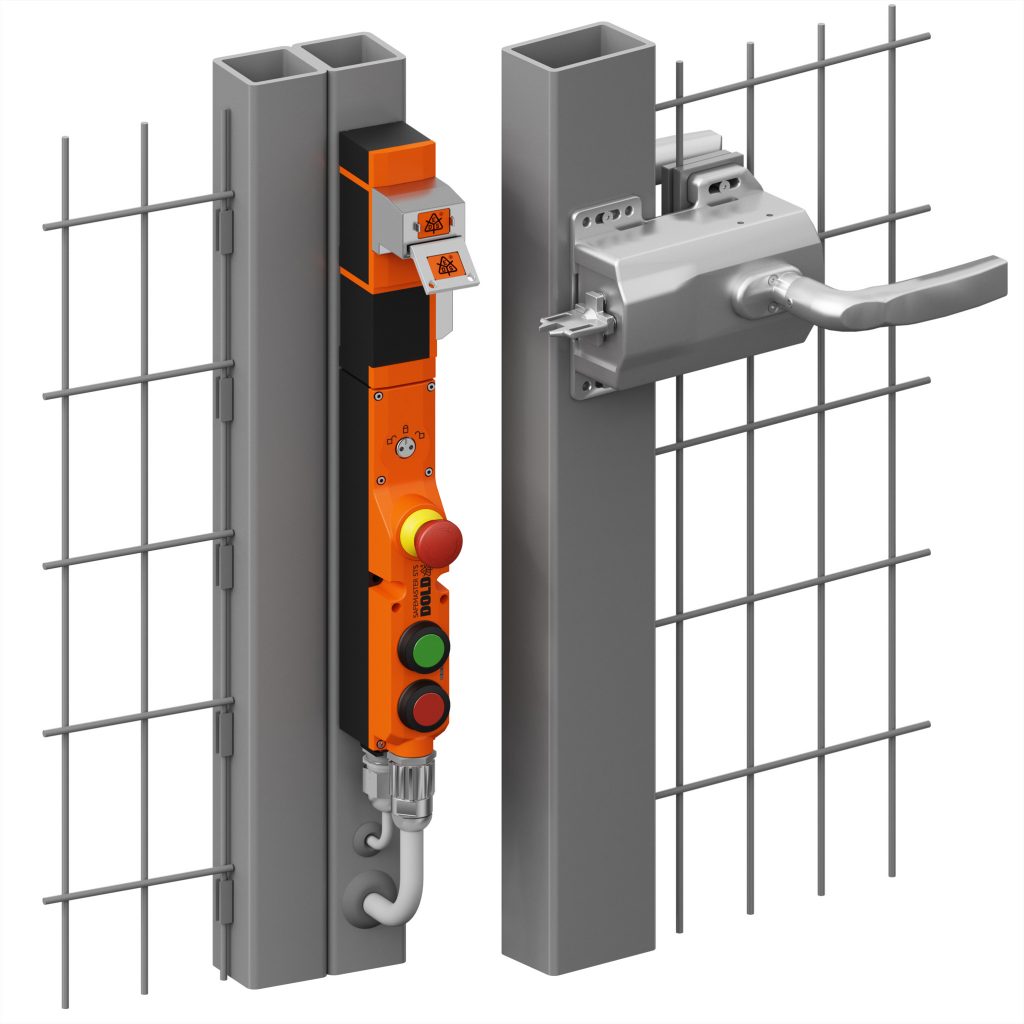 Maschinen und Anlagen sind häufig durch Schutzzäune abgesichert und müssen in regelmäßigen Abständen für Wartungsarbeiten oder für das Beheben von Störungen betreten werden. Mit dem Türgriffbetätiger ist ein komfortables und ergonomisches Öffnen von Türen und Schutzeinrichtungen ohne Abstriche bei der Sicherheit möglich. Optional ist ein beweglicher, selbstjustierender Betätiger erhältlich. Dieser ermöglicht einen Versatz der Schließelemente von bis zu 20mm. Somit wird die volle Funktionsfähigkeit bei abgesetzten oder verbogenen Türen gewährleistet. Zugleich können in geöffneter Stellung bis zu drei Vorhängeschlösser eingehängt werden und bietet so Schutz vor unbeabsichtigter Einsperrung. Der stabile Türgriff ist für links- und rechts angeschlagene Türen einsetzbar und in 90° Schritten drehbar, wenn eine waagrechte Griffstellung anlagenbedingt nicht möglich ist. Optional kann der Türgriffbetätiger auch mit einem Türgriff an der Innenseite versehen werden.