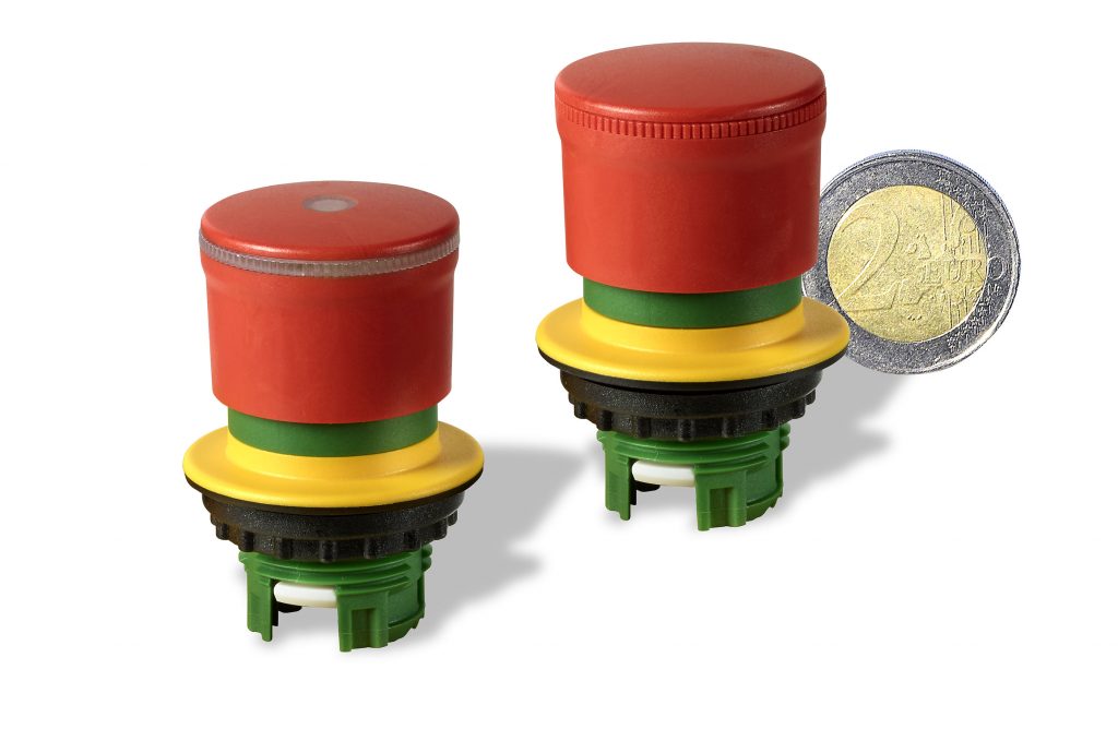 Eaton hat eine neue Serie kompakter Not-Halt-Taster auf den Markt gebracht, die Funktionalität, Sicherheit und ansprechendes Design auf kleinem Raum verbinden. Diese bietet ein helles 360° rundum sichtbare Beleuchtungssystem. Der Not-Halt-Taster aus der RMQ-Serie eignet sich gleichermaßen für Panels, Touchdisplays und kleinere Anwendungen, wie Fernbedienungen oder zum Direkteinbau in Maschinen. Er ist 30% kleiner als die Standard-Not-Halt-Serie des Anbieters. Mit einem Durchmesser von 30mm und einer Höhe von 32mm erfüllt er die Nachfrage nach kleineren, schlankeren Steuerpulten, ist aber dennoch groß genug für traditionellere Anwendungen. Der optionale 360° LED-Ring und die Frontbeleuchtung sorgen dafür, dass der Taster auch in schwach beleuchteten oder dunklen Umgebungen aus allen Winkeln sichtbar ist. Mittels der RGB-LED-Elemente kann hier zwischen bis zu sieben Farben gewechselt werden, um den Status einer Maschine anzuzeigen.