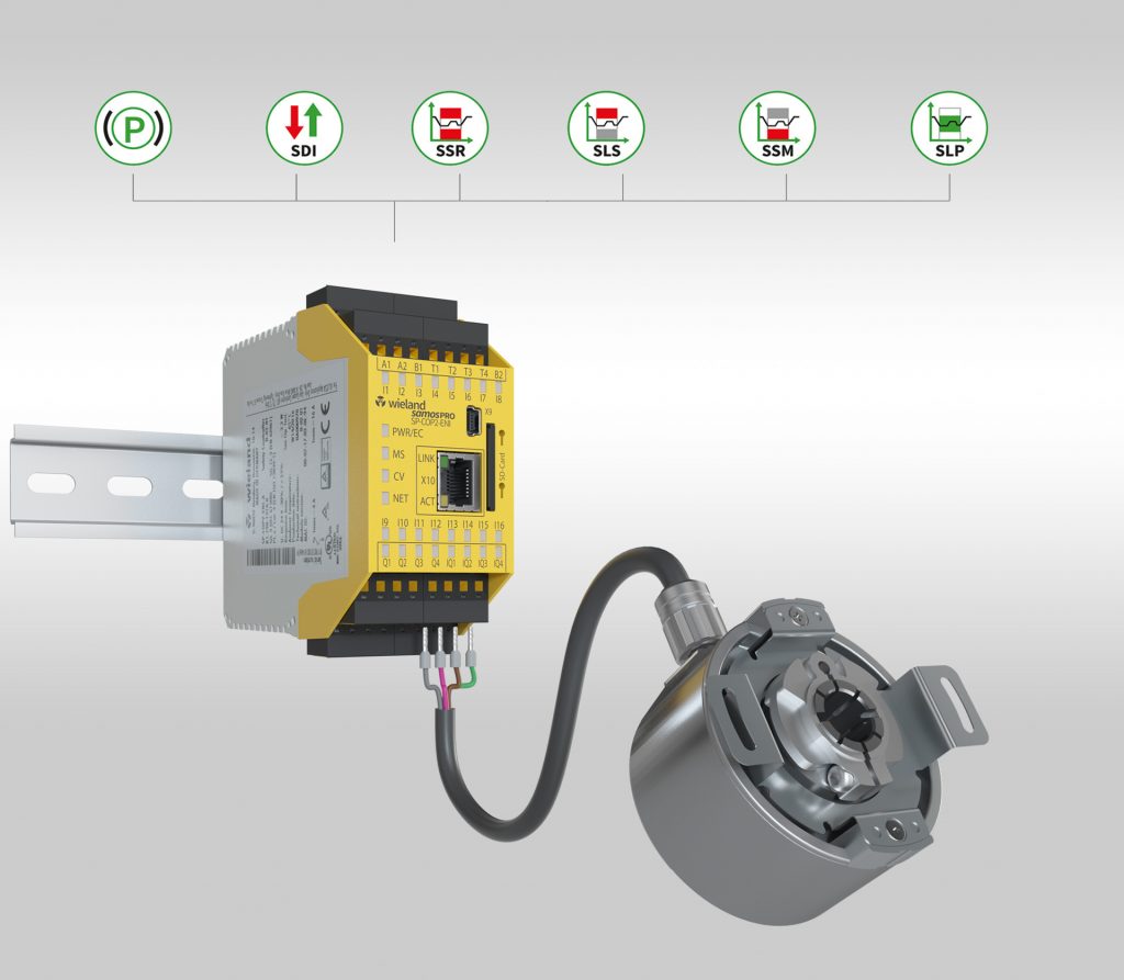 Mit der Samos Pro Motion präsentiert Wieland Electric eine kompakte Sicherheitssteuerung in 45mm Breite, die in ihrem Basismodul über alle Funktionalitäten für eine umfassende Drehzahl-, Drehrichtungs- und Positionsüberwachung verfügt, ohne dass ein zusätzliches Motion-Modul nötig ist. Ein Gateway-Modul für Profinet I/O, EtherNet/IP oder Modbus TCP ist dank der Industrial-Ethernet-Integration ebenfalls nicht notwendig. Die SPS umfasst sechs Grundfunktionen für die sichere Geschwindigkeits-, Positions- und Richtungsüberwachung.Über Bewegungssensoren werden die Impulse bis zu 70kHz erfasst, welche die Steuerung in Geschwindigkeit, Winkel, Position und Richtung wandelt.